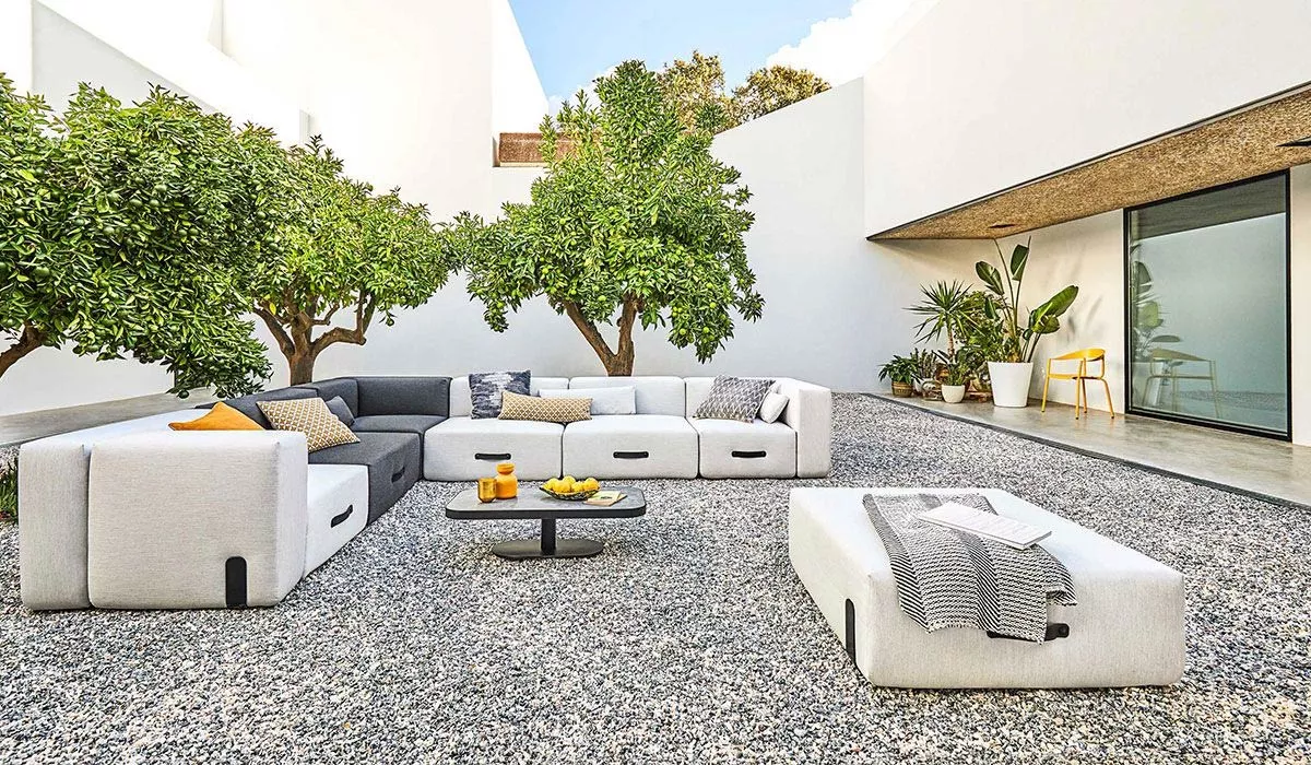 Vom kleinen Ecksofa im Wohnzimmer bis zur weiten Sitzlandschaft unter freiem Himmel: Wie immer Sie Ihr Miami Sofa einsetzen möchten, dank der vier flexibel kombinierbaren Module stellen Sie es sich ganz nach Ihren Wünschen zusammen. Die wasserdichten Bezüge sind in drei Farben erhältlich – und treffen so in jeder Umgebung den richtigen Ton.