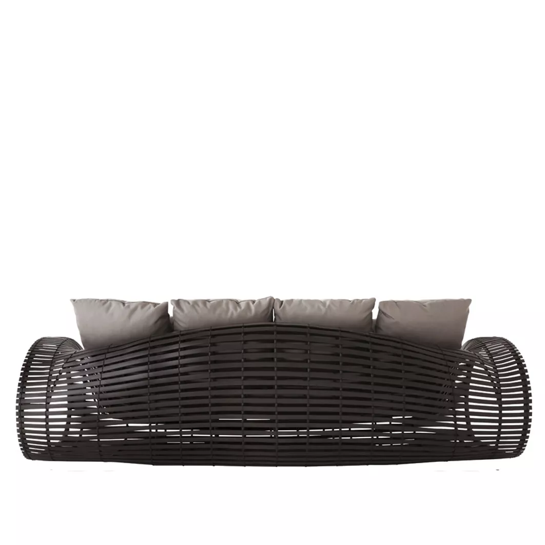 Kenneth Cobonpue Lolah verbindet traditionelle Bootsbau Technik mit modernem Design. Diese Outdoor Kollektion zeichet sich durch die Flexibilität des Materials und eine Vielzahl von sinnlichen Kurven mit stilvollen Oberflächen in braun bzw. whitewash aus. Lolah präsentiert mit seiner sinnlichen Form, Materialökonomie und strukturellen Schönheit eine Loungegruppe der Luxusklasse. Die abgerundete Elemente der Lolah Kollektion strahlen Komfort und Gemütlichkeit aus. Das transparente Design verleiht den Eindruck in der Luft zu schweben. Die besonders leichte Silhouette definiert die Lolah Gartenmöbel. Das Kunstoffgestell wirft einen schönen, dekorativen Schatten während die Sonne auf- und untergeht.