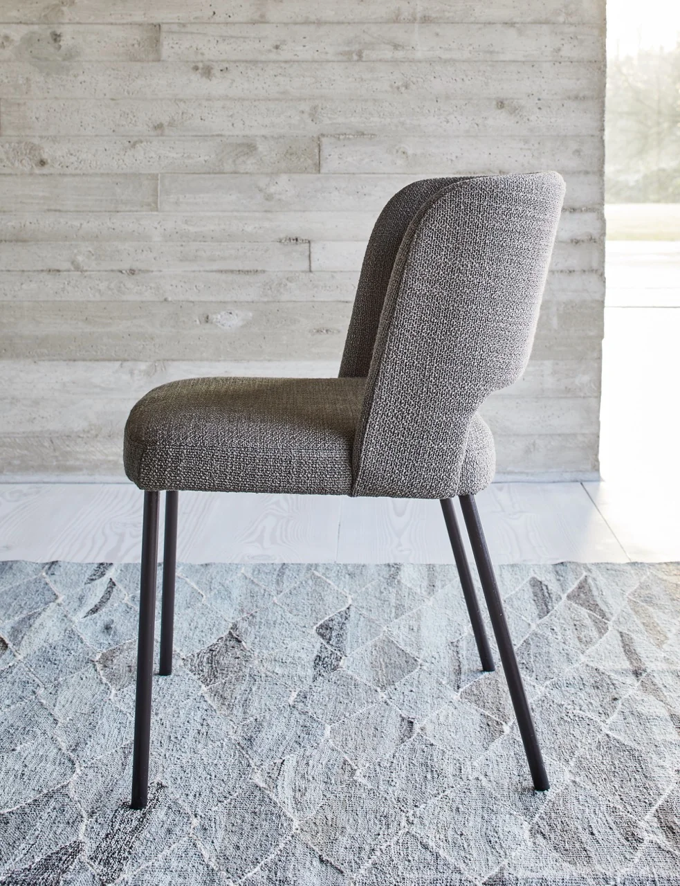 Das Gestell des Stuhls besteht aus stabilem Stahl mit einer anthrazitfarbenen Pulverbeschichtung. Diese verleiht dem Stuhl ein elegantes, zeitloses Aussehen und schützt gleichzeitig das Material vor äußeren Einflüssen.