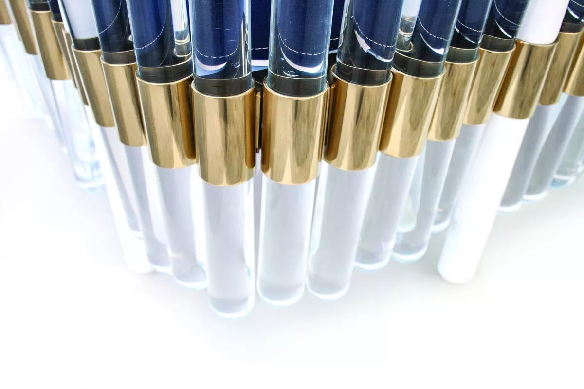 Gestell: Edelstahl weiß pulverbeschichtet • vergoldeter Edelstahl