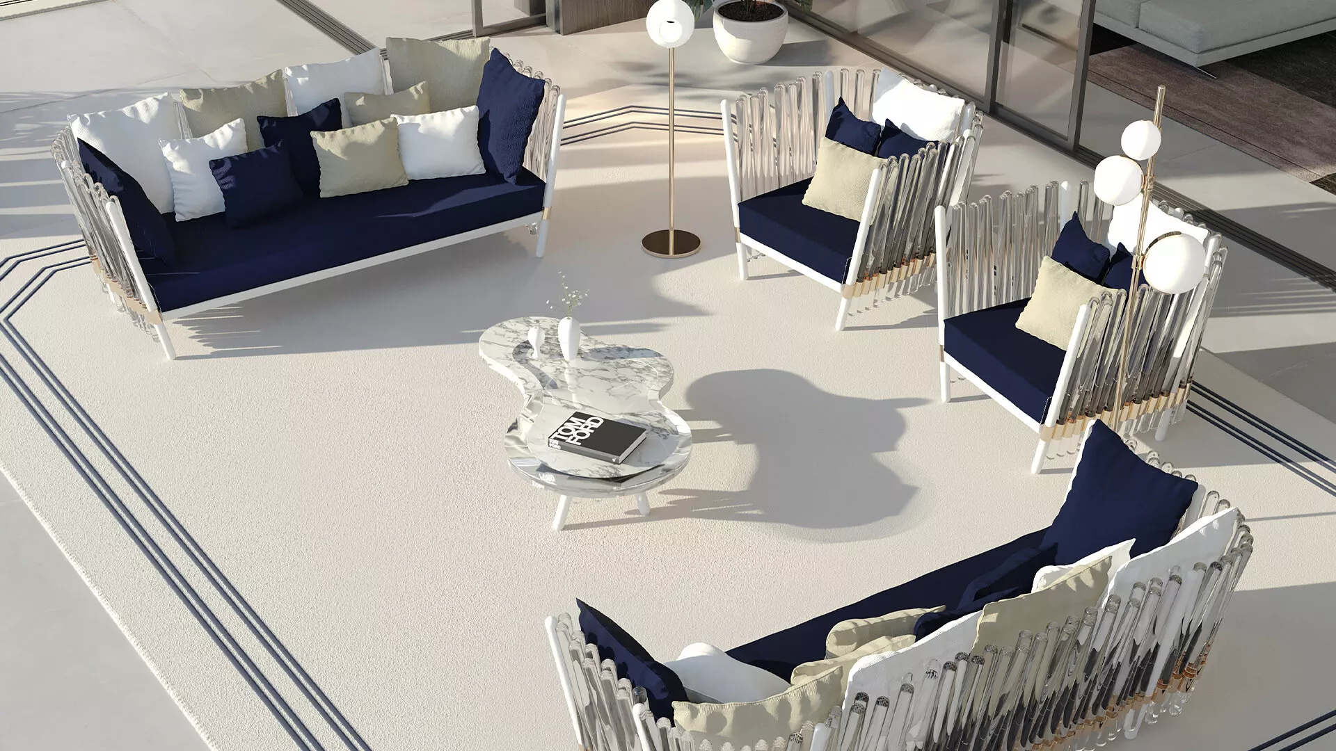 Im Konzept der Dualität von Sonnenuntergang und Sonnenaufgang liegt die Magie, und nach dieser Ideologie wurde auch der Houdini-Sessel entworfen. Lichter und Schatten, die von Acrylwellen gestreut werden, verschmelzen mit der Außenumgebung rund um die Loungegruppe und sorgen für Raffinesse in jedem Außenbereich.