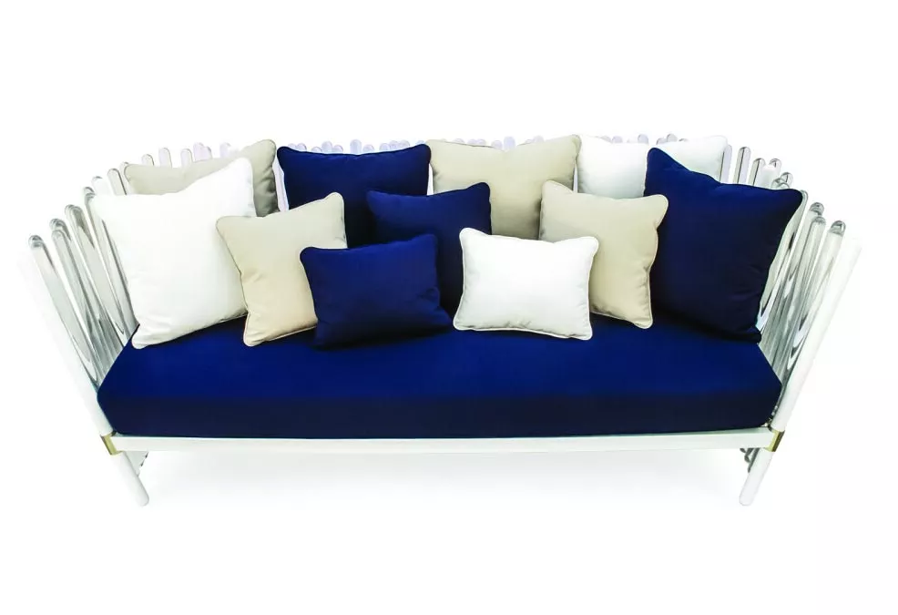MYFACE Houdini Outdoor Daybed • Design Liege MYFACE Stoffauswahl MYFACE Katalog Dieses attraktive Daybed wird von Elementen aus lackiertem Edelstahl und Kunststoff gehalten und ist in einer breiten Farbpalette aus wetterfestem Sunbrella Stoff erhältlich, so dass Sie ohne Bedenken hochwertige Momente im Freien genießen können. Im Konzept der Dualität von Sonnenuntergang und Sonnenaufgang liegt die Magie, und nach dieser Ideologie wurde auch der Houdini-Sessel entworfen. Lichter und Schatten, die von Acrylwellen gestreut werden, verschmelzen mit der Außenumgebung rund um die Loungegruppe und sorgen für Raffinesse in jedem Außenbereich. MYAFCE. GESCHAFFEN, UM DAS GLÜCK ZU SUCHEN Inspiriert von den einfachen Dingen des Lebens wie der Wärme der Sonne am Morgen, der Musik, die den Tag einleitet, dem Outfit, das wir wählen, um uns stark zu fühlen - Erfahrungen, die uns das tägliche Glück bescheren. MYAFCE ist eine Marke, die über Outdoor-Möbel hinausgeht und nicht nur ein integraler, sondern ein grundlegender Bestandteil des Lebens wird. Verwurzelt in den neuesten Design-, Musik-, Modetrends und Glück, führt unser kreativer Prozess die Marke dazu, den individuellen Geschmack und die Persönlichkeit zu treffen und spiegelt in seinen Kreationen die Werte wider, die unsere Anhänger und Kunden charakterisieren, und stärkt so diese Beziehung, die uns heilig ist. Armlehnen: Stangen aus klarem Acryl Gestell: Edelstahl weiß pulverbeschichtet • vergoldeter Edelstahl Sitz- und Rückenkissen: Acrylgewebe Schutzhülle: inklusive Maße (B × T× H) 225 × 215 × 77 cm