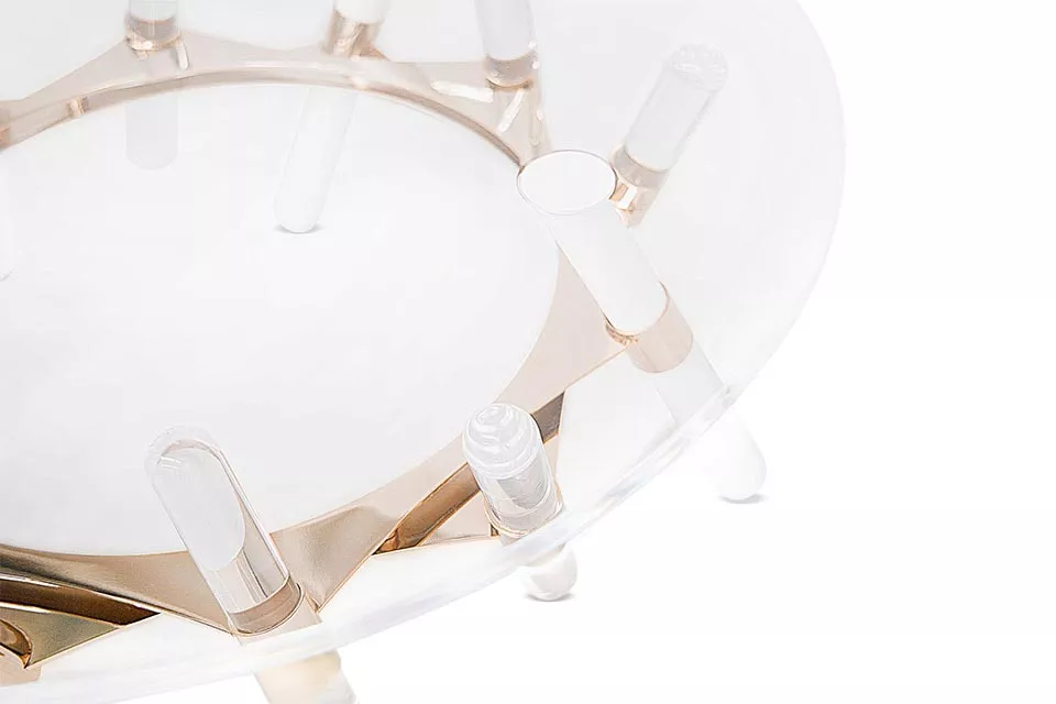 Gestell: Edelstahl weiß pulverbeschichtet • vergoldeter Edelstahl