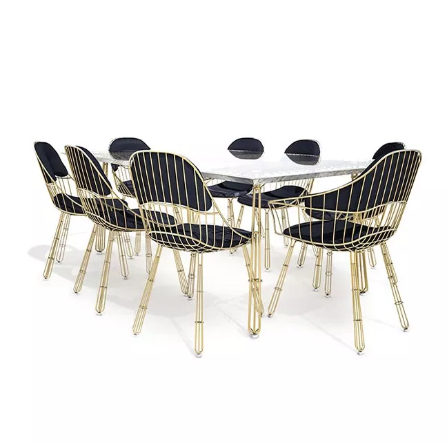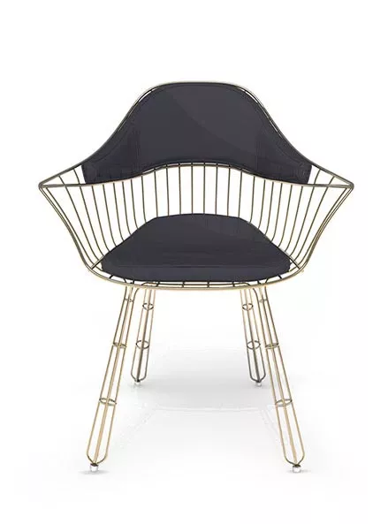 Nodo Gartenstühle zeichnen sich durch attraktive metallische Linien aus, kombiniert mit komfortablen Polstern, die die Liebe zum Detail und zur Konstruktion betonen. Mit hochwertigen Materialien und luxuriösen Oberflächen verleihen sie einer modernen Essgruppe im Freien einen Hauch von Zartheit und Leichtigkeit.