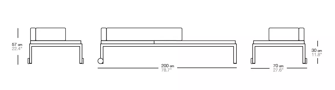 Übersicht Stoffauswahl Bivaq Die Lounge-Kollektion Nak von Bivaq besteht aus Sofas, Loungesesseln, Kaffeetischen und Liegestühlen. Bei der Herstellung dieser Kollektion wird ein robustes, pulverbeschichtetes Aluminiumgestell verwendet. Nak wurde mit Materialien entwickelt, die im Freien gelagert werden können - sowohl das Gestell als auch die Kissen. Nak ist in zwei Sitzhöhen, hoch und niedrig, und zwei Breiten, L und XL erhältlich. Die Kissen sind aus wasserdichtem Vinytex- oder Acryl-Stoff gefertigt. Nak ist vielseitig - die Optik und der Zweck können sich durch einfaches Hinzufügen oder Entfernen von Kissen aus den Rücken-oder Armlehnen verändern. Aluminiumgestellpulverbeschichtet Sitz- und RückenflächeVinytex • Polyester plastikbeschichtetAcrylic • 100% Acrylstoff gefärbt Maße (B × T × H) 200 × 70 × 30 cm