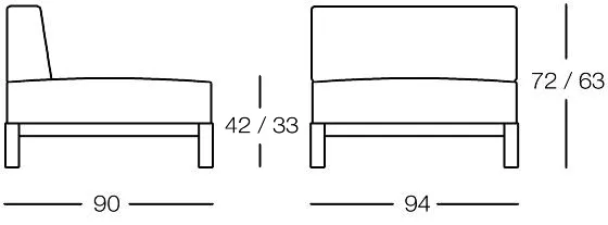 - 94 × 90 × 33/42 cm