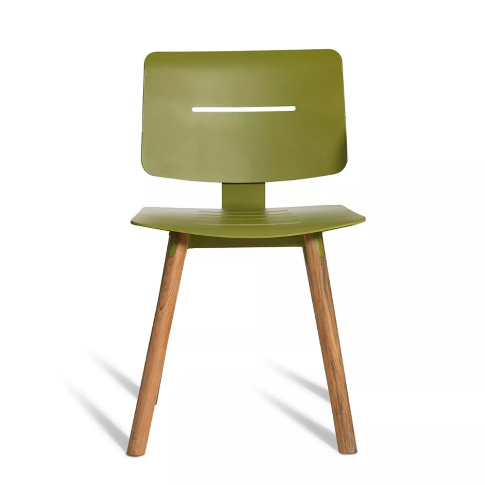 COCO 's funky Flair ist durch eine kreative Mischung von Materialien definiert. Stahlrahmen und Aluminiumsitzpaneele sind in der gleichen Farbe pulverbeschichtet, um ein markantes Erscheinungsbild zu bilden. Elegante Teakholz Beine erhöhen den Kontrast. Passende Sitzkissen sind aus Sunbrella Stoff hergestellt und haben eine dünne Schaumstoffpolsterung. Der gute Sitzkomfort des Stuhls wird dadurch verstärkt.