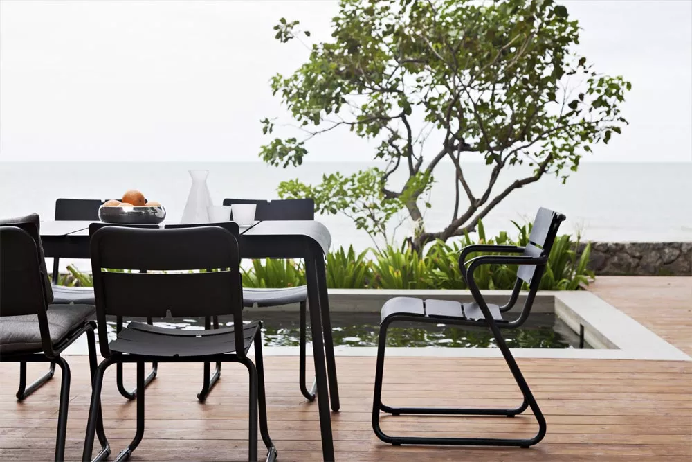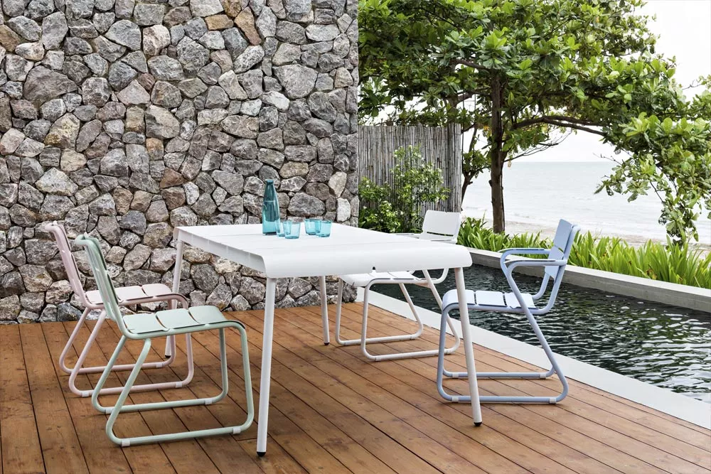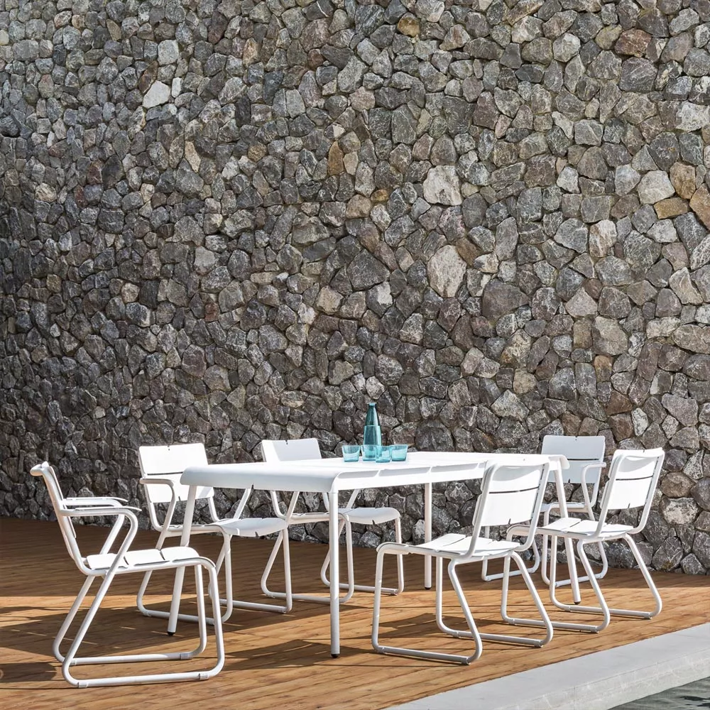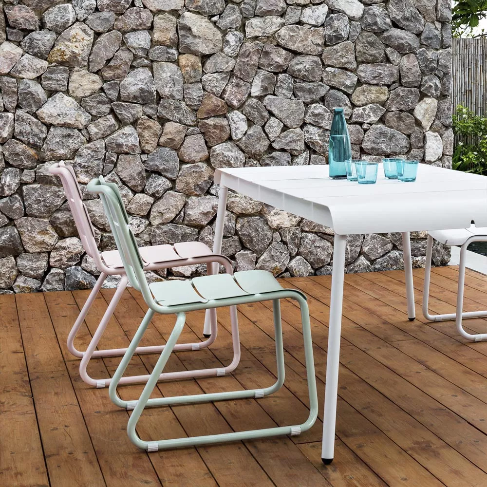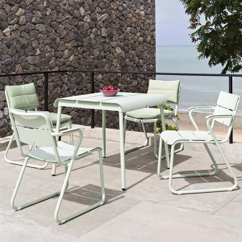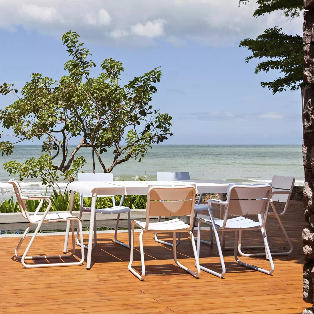 Die wetterfesten und kompakten Stühle und Tische der Corail Kollektion sind ideal für die städtische Gärten und Balkone geeignet. Robustes Gestell und Aluminiumlamellen sorgen für einen hervorragenden Sitzkomfort, sowohl mit als auch ohne Kissen. Corail Sitzmöbel bildet in der Kombination mit Reef, Machar oder Ceru Esstischen sehr praktische und bequeme Essgruppe. Diese schlanke Kollektion wird schnell zu Ihrem Liebling im Garten oder auf der Terrasse.