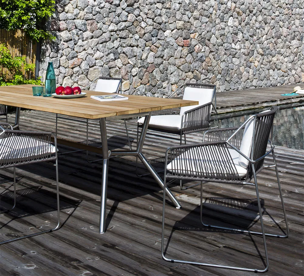 Die wetterfesten Modelle der REEF Kollektion sind ideal für die städtische Gärten und Terrassen geeignet. Robustes Edelstahl- oder Aluminiumgestell und Teakholz bzw. HPL Tischplatten sorgen für einen hervorragenden Komfort. REEF Gartentische bilden in der Kombination mit Gartenstühlen sehr praktische und bequeme Essgruppe. Diese originelle Kollektion wird schnell zu Ihrem Liebling im Garten.
