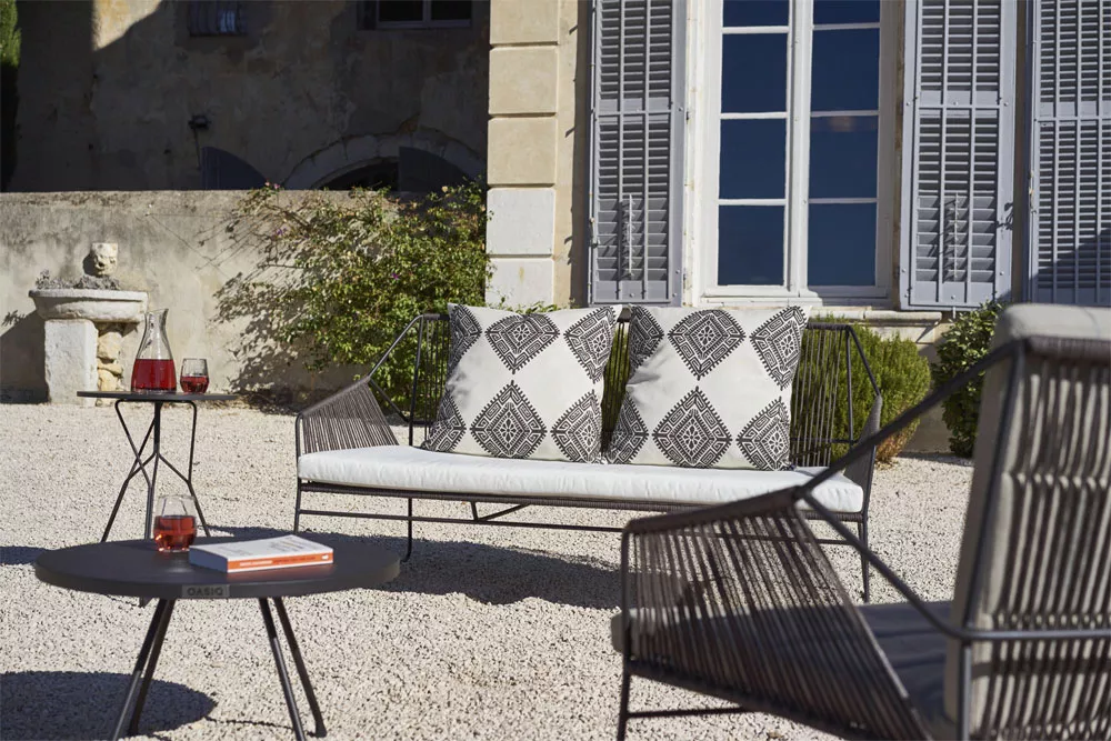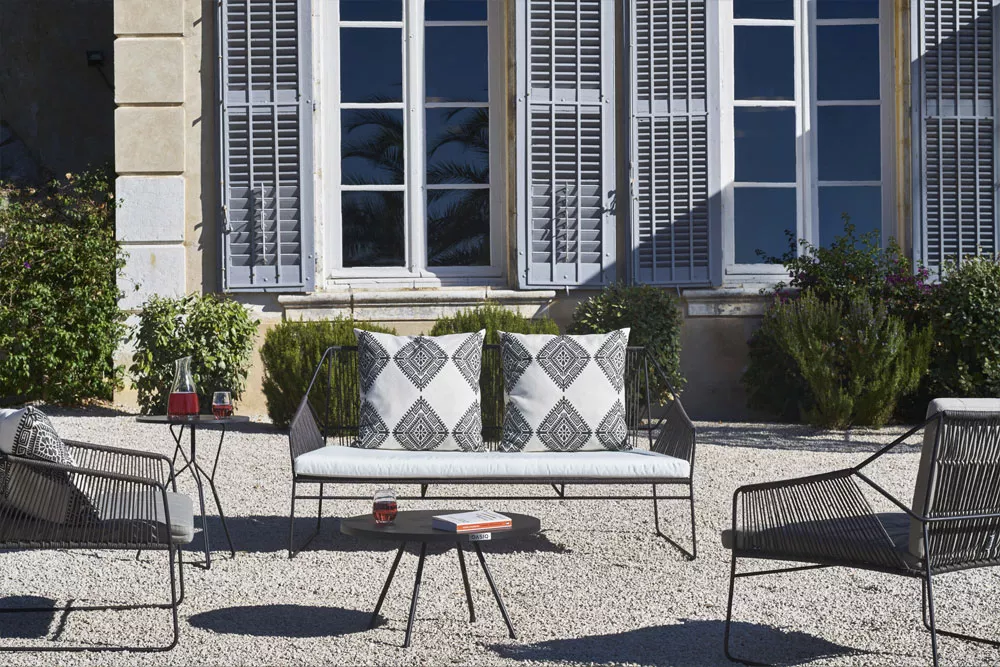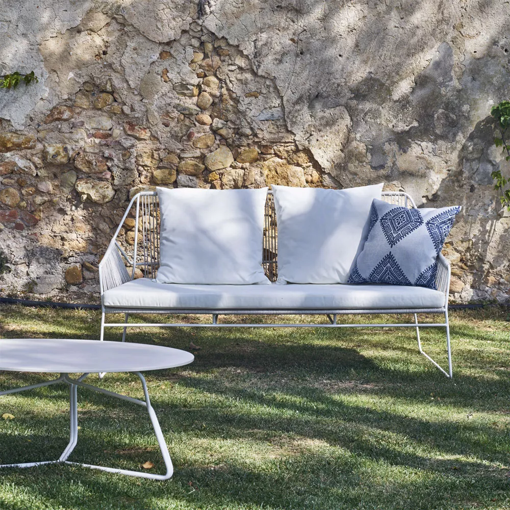 SANDUR's unverwechselbares Muster betont den luftigen Charakter dieser Kollektion. Ein rohrförmiger Edelstahlrahmen unterstützt ein starkes und wetterfestes Kordelgeflecht. Die Kordel wird von geschickten Handwerkern, die stolz auf die hervorragende Qualität ihrer Arbeit sind, auf den Rahmen eingeflohten. Mit einer Vielzahl von stilvollen Farbkombinationen ist diese Kollektion ideal für jede Outdoor-Umgebung. Um den Komfort zu vervollständigen, können Sie Ihre SANDUR Loungegruppe mit den Outdoorkissen Ihrer Wahl kombinieren. Sowohl die Bezüge als auch die Füllungen sind wetterfest und dürfen den gesamten Sommer im Freien verbleiben.