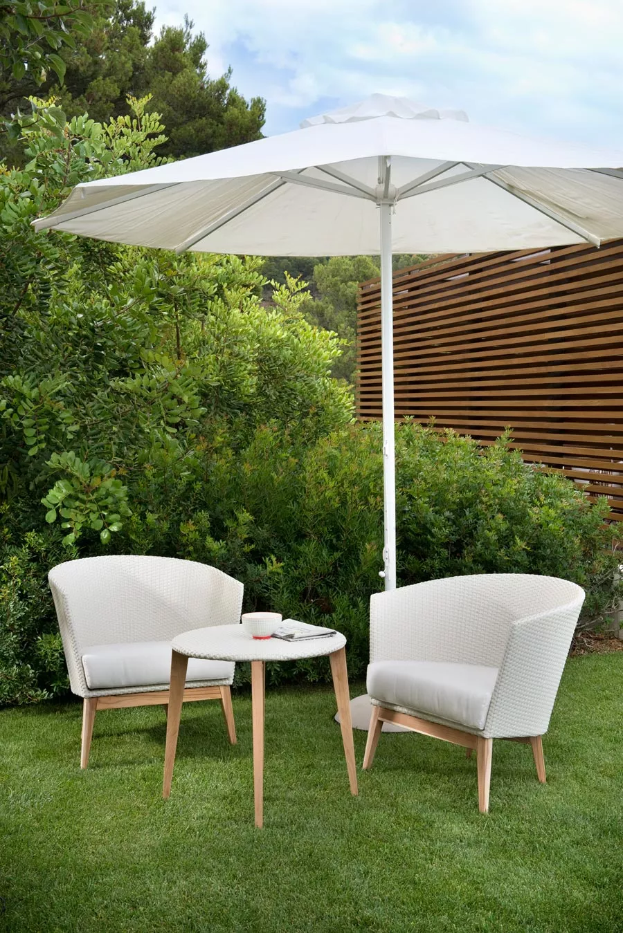 Point Arc Kollektion besteht aus Outdoor Lounge- und Essgruppe. Alle Arc Produkte sind mit einem hochwertigen Teakholzgestell sowie wetterresistentem Kunststoffgeflecht, montiert auf einem Aluminiumrahmen hergestellt. Das Shintotex Synthetikgeflecht ist besonders widerstandsfähig gegenüber Hitze, Regen, Eis, Schnee und UV-Strahlung.