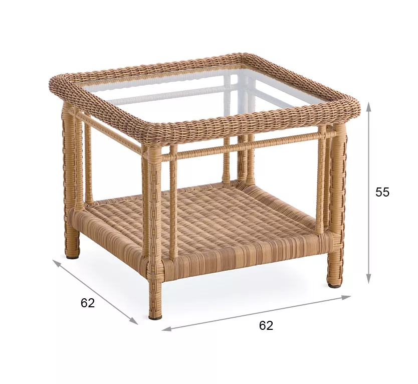 | Material Tischplatte: | Glas, Kunststoffgeflecht |