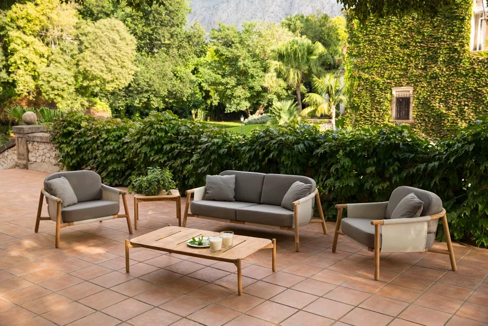 Point Hamp Kollektion besteht aus Outdoor Lounge- und Essgruppe. Alle Hamp Produkte sind mit einem hochwertigen Teakholzgestell sowie wetterresistenter Batyline Bespannung hergestellt. Die verwendete Materialien sind besonders widerstandsfähig gegenüber Hitze, Regen, Eis, Schnee und UV-Strahlung.