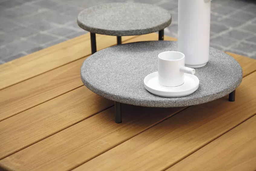 Point 1920 Pal Beistelltisch mit Granit Tischplatte Ø 28 × 14 cmPoint 1920 Pal - modulierbares Lounge-System aus massivem Teakholz. Diese Gartenmöbel Kollektion bietet nahezu endlose Möglichkeiten für die individuelle Zusammensetzung einer modernen und bequemen Loungegruppe. Die auf einer festen Teakholzplattform platzierten, gepolsterten Loungemodule bieten viel Platz zum Sitzen und bilden eine erholsame Atmosphäre im Freien. Alle Pal Produkte sind mit einem hochwertigen pulverbeschichteten Aluminium Untergestell sowie wetterresistentem Polster hergestellt. Die verwendete Materialien sind besonders widerstandsfähig gegenüber Hitze, Regen, Eis und Schnee und UV-Strahlung. Mit über 85 Jahren Erfahrung in der Branche gehört Point 1920 zu den Pionieren in der Herstellung, Vermarktung und dem Export hochwertiger Flechtmöbel. Traditionelles Flechthandwerk und moderne Materialien sorgen für einzigartige Gartenmöbel, die durch ihre Exklusivität und Funktionalität begeistern. Hochwertiges Aluminium Untergestell, beschichtet Tischplatte aus Granit Wetterbeständig Leicht zu reinigen Maße (Ø × H) 28 × 14 cm