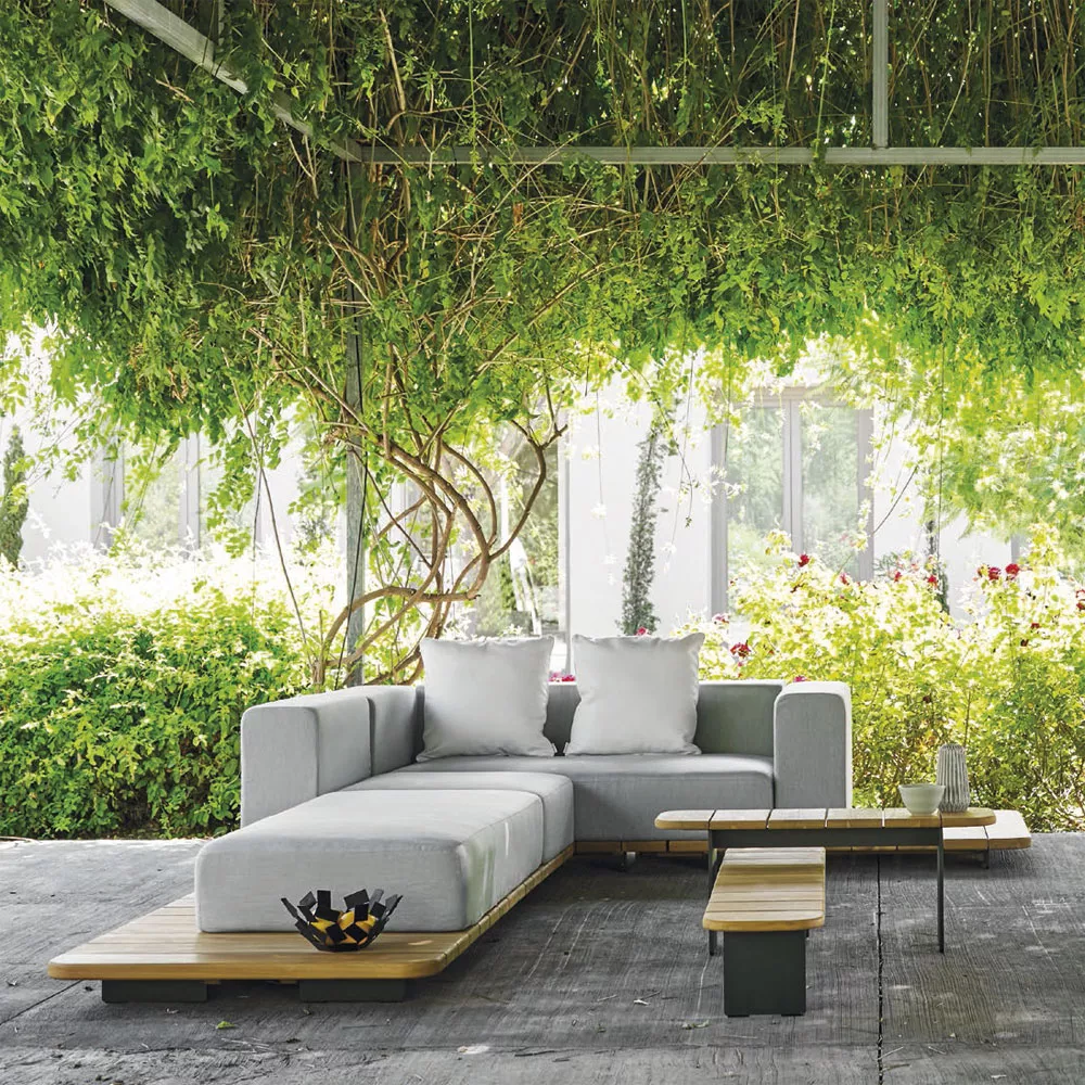 Point 1920 Pal - modulierbares Lounge-System aus massivem Teakholz. Diese Gartenmöbel-Kollektion bietet nahezu endlose Möglichkeiten für die individuelle Zusammensetzung einer modernen und bequemen Loungegruppe. Die auf einer festen Teakholzplattform platzierten, gepolsterten Loungemodule bieten viel Platz zum Sitzen und bilden eine erholsame Atmosphäre im Freien. Alle Pal Produkte sind mit einem hochwertigen pulverbeschichteten Aluminium Untergestell sowie wetterresistentem Polster hergestellt. Die verwendete Materialien sind besonders widerstandsfähig gegenüber Hitze, Regen, Eis und Schnee und UV-Strahlung. Mit über 85 Jahren Erfahrung in der Branche gehört Point 1920 zu den Pionieren in der Herstellung, Vermarktung und dem Export hochwertiger Flechtmöbel. Traditionelles Flechthandwerk und moderne Materialien sorgen für einzigartige Gartenmöbel, die durch ihre Exklusivität und Funktionalität begeistern.