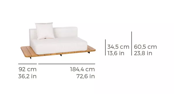 Point 1920 Pal Gartensofa Modul rechts 184 cm, Doppelsitz mit Ablagefläche