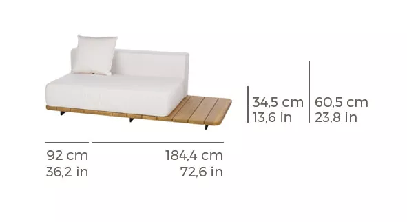 Point 1920 Pal Gartensofa Modul rechts 184 cm, Doppelsitz mit Ablagefläche