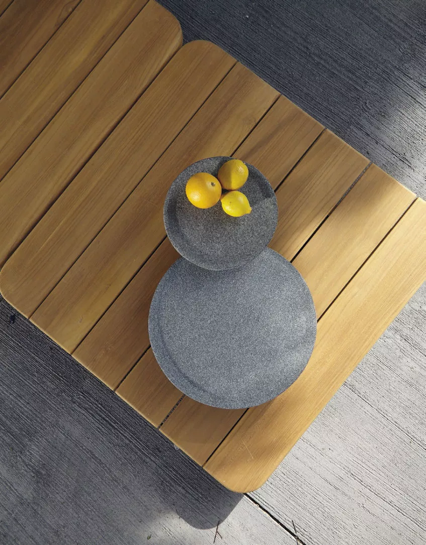 Point 1920 Pal Beistelltisch mit Granit Tischplatte Ø 42 × 9 cmPoint 1920 Pal - modulierbares Lounge-System aus massivem Teakholz. Diese Gartenmöbel Kollektion bietet nahezu endlose Möglichkeiten für die individuelle Zusammensetzung einer modernen und bequemen Loungegruppe. Die auf einer festen Teakholzplattform platzierten, gepolsterten Loungemodule bieten viel Platz zum Sitzen und bilden eine erholsame Atmosphäre im Freien. Alle Pal Produkte sind mit einem hochwertigen pulverbeschichteten Aluminium Untergestell sowie wetterresistentem Polster hergestellt. Die verwendete Materialien sind besonders widerstandsfähig gegenüber Hitze, Regen, Eis und Schnee und UV-Strahlung. Mit über 85 Jahren Erfahrung in der Branche gehört Point 1920 zu den Pionieren in der Herstellung, Vermarktung und dem Export hochwertiger Flechtmöbel. Traditionelles Flechthandwerk und moderne Materialien sorgen für einzigartige Gartenmöbel, die durch ihre Exklusivität und Funktionalität begeistern. Hochwertiges Aluminium Untergestell, beschichtet Tischplatte aus Granit Wetterbeständig Leicht zu reinigen Maße (Ø × H) 42 × 9 cm