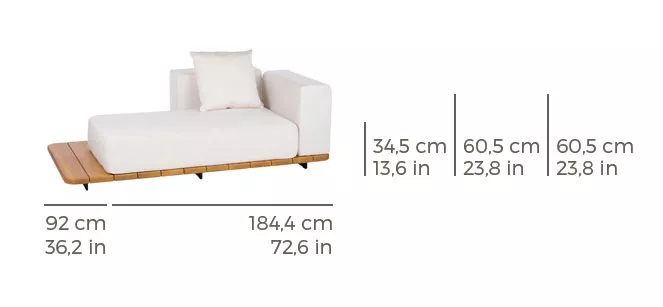 Point 1920 Pal Gartensofa Recamiere Modul links 184 cm,