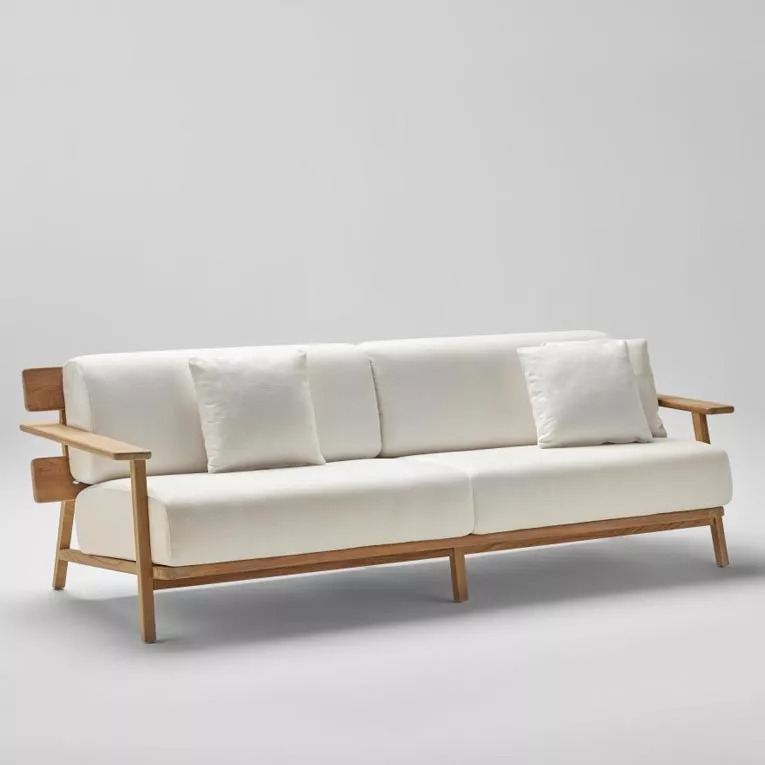 Point 1920 Paralel Loungesofa 182 cm exkl. Polster und DekokissenDie Paralel Kollektion, von Gabriel Teixidó entworfen, ist der neue Outdoor-Möbel Vorschlag von POINT. Eine Teakholzkollektion von bis zu vierzehn Stücken, zu der Stühle, Sessel, Polstersessel und Tische von zeitgenössischer Ästhetik und hohem Komfort gehören, deren Rücken dem Modell seinen charakteristischen und differenzierten Punkt verleiht. Sommerabende unter freiem Himmel vermitteln nun die wohltuende Raffinesse der POINT Outdoor-Designermöbel mit der neuen Paralel-Kollektion, einem zeitlosen, detailreichen Design, das darauf ausgerichtet ist, mit Menschen zu kommunizieren, Wohlbefinden zu vermitteln und unvergessliche Erinnerungen unter Sonne und Sternen zu schaffen. Der Name Paralel ist von der eigenen Struktur und Silhouette inspiriert. Paralel ist aus einer Teakholzstruktur mit langen, parallelen Armen entstanden, die die Rückenlehne und den Sitz der Möbel auf ausgewogene und elegante Weise umschließt. Sein Design ist so konzipiert, dass es aus jedem Blickwinkel schön ist. “Holz ist ein lebendiges Element, das sich gut mit dem Menschen verbindet und Wärme bringt", sagt Gabriel Teixidó. Holz wird mit Seilsträngen und Stoffen kombiniert, die es dem Designer ermöglicht haben, den für diese Bereiche erforderlichen Komfort und die Bequemlichkeit zu bieten. Gabriel Teixidó definiert die Paralel-Kollektion als eine ruhige Kollektion, die gekommen ist um zu bleiben. “Paralel ist ein Klassiker und gleichzeitig ein zeitgenössischer Vorschlag, der da ist um zu bleiben und uns über einen langen Zeitraum begleiten soll. Die Kollektion soll eine visuelle und emotionale Wirkung erzeugen, die eine unmittelbare Verbindung zum Benutzer schafft", sagt er. Hochwertiges Teakholzgestell Breite Polster-Farbpalette, wetterfeste Stoffe Wetterbeständig Leicht zu reinigen Maße (B × T × H) 182 × 91 × 74 cm