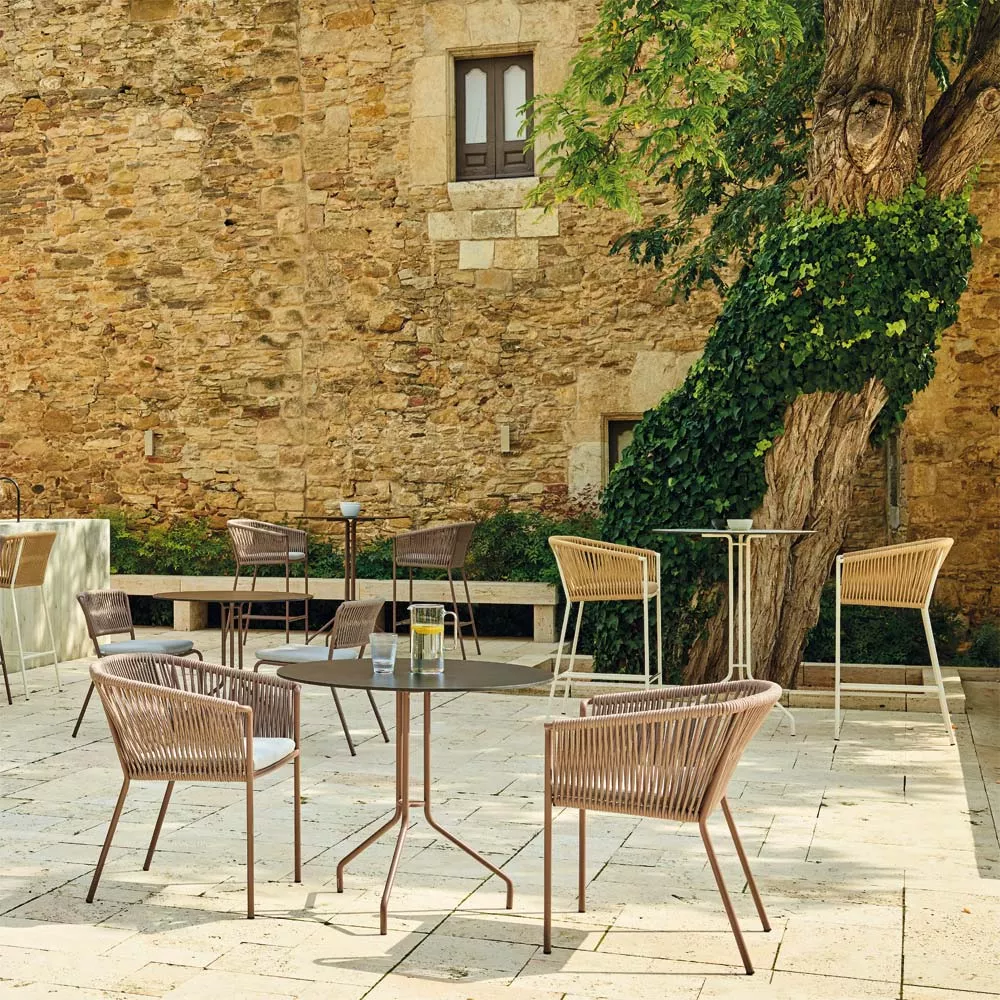 Point Weave Gartentisch mit HPL Tischplatte Ø 90 oder 90 × 90 cm
