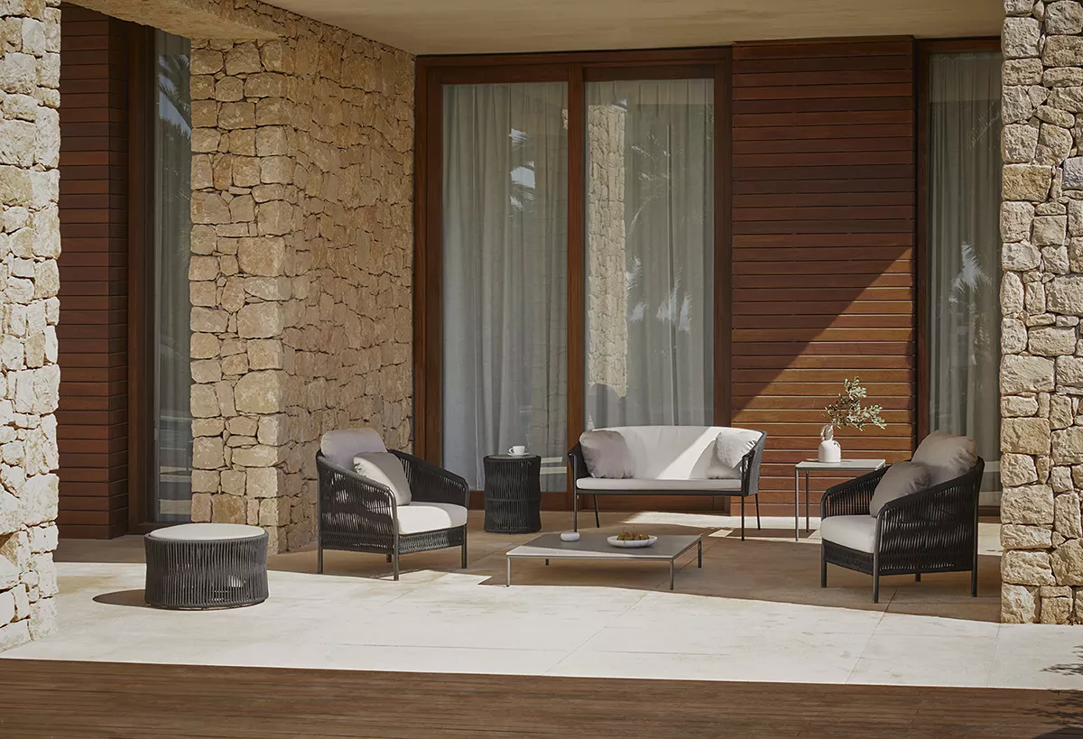Die brandneue Point Outdoor Serie Weave verbindet feminine Leichtigkeit eines Kunststoffgeflechts mit der geschwungenen Linien des Aluminiumkarkases. Weave - moderne und robuste Kollektion für den Innen- und Außenbereich.