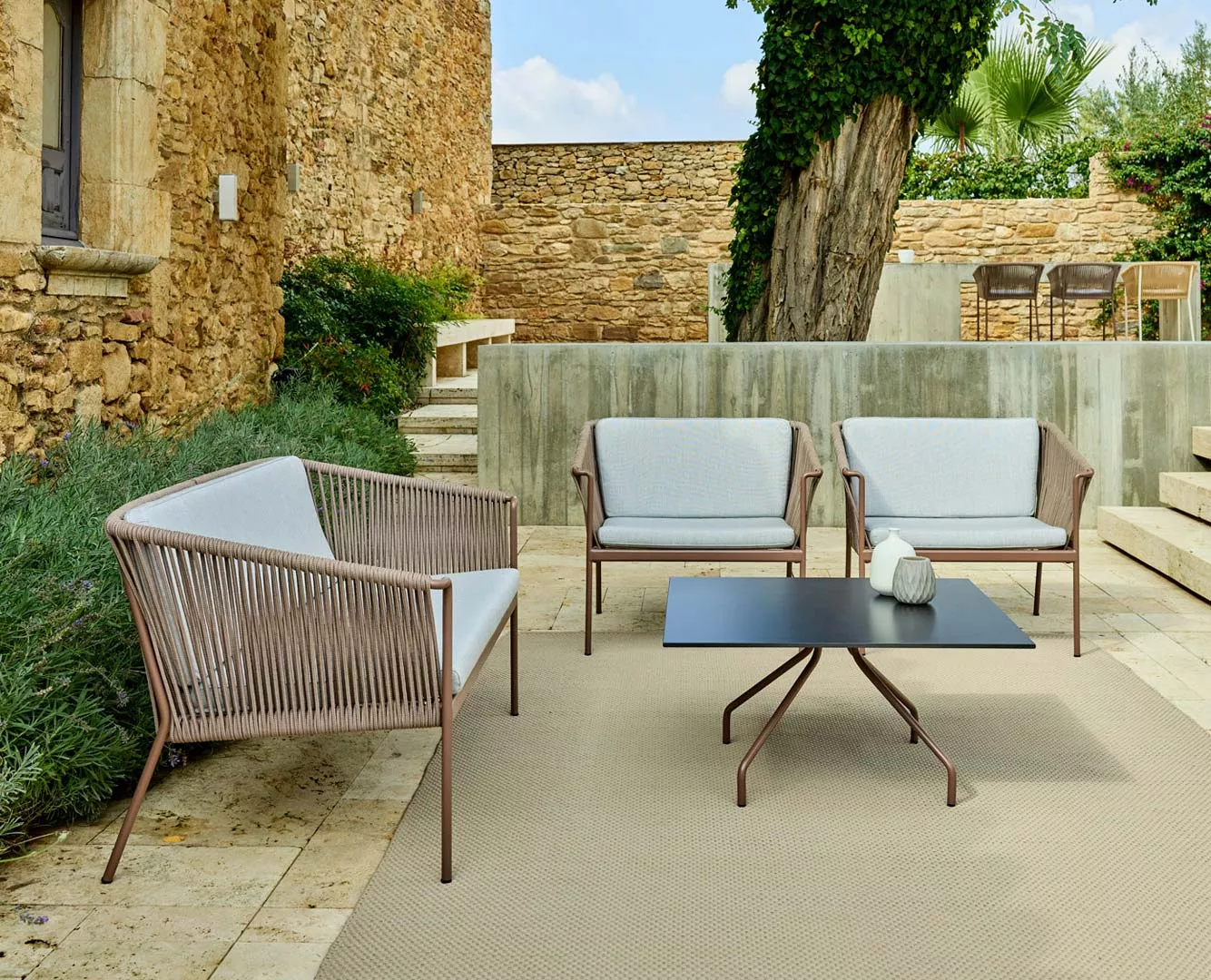 Point Loungesofa Zweisitzer Weave mit Synthetikgeflecht und einem Gestell aus pulverbeschichtetem Aluminium.