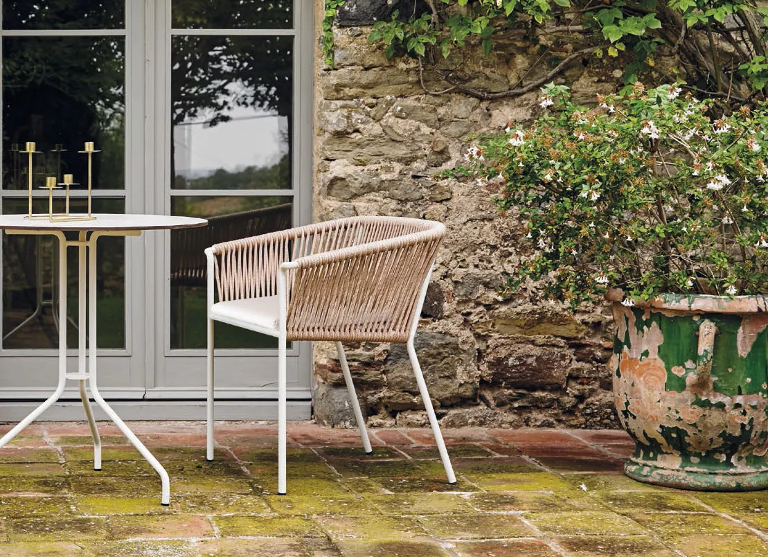 Die brandneue Point Outdoor Serie Weave verbindet feminine Leichtigkeit eines Kunststoffgeflechts mit der geschwungenen Linien des Aluminiumkarkases. Weave - moderne und robuste Kollektion für den Innen- und Außenbereich.