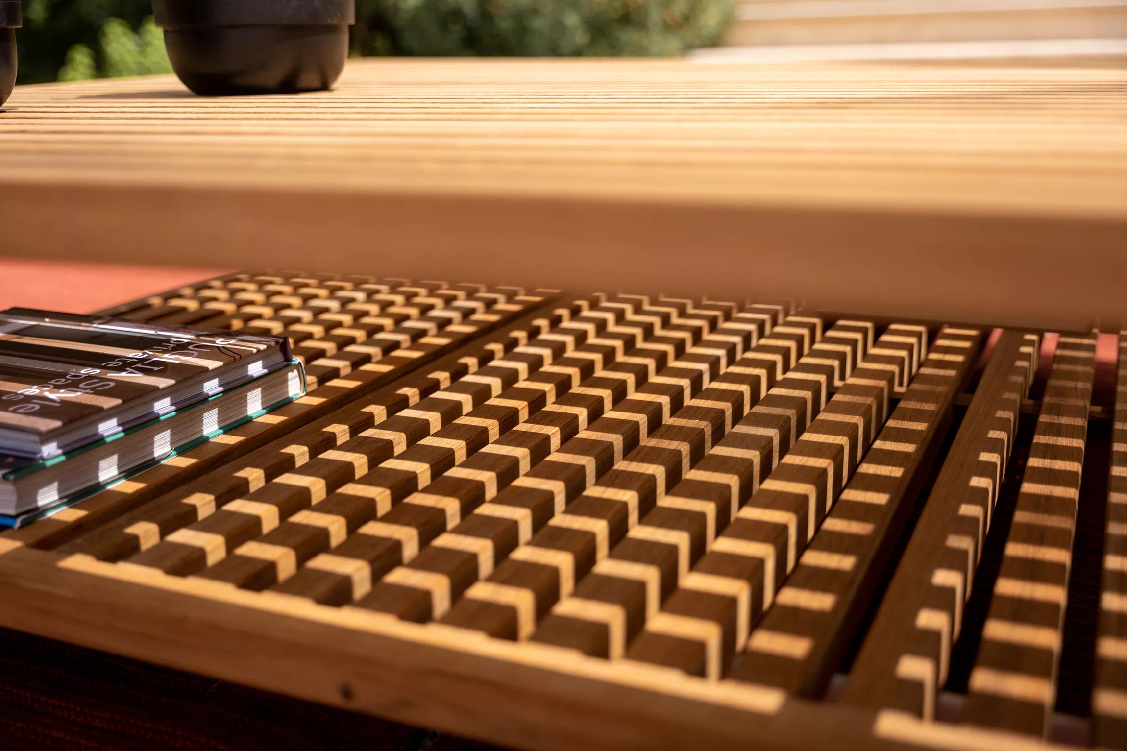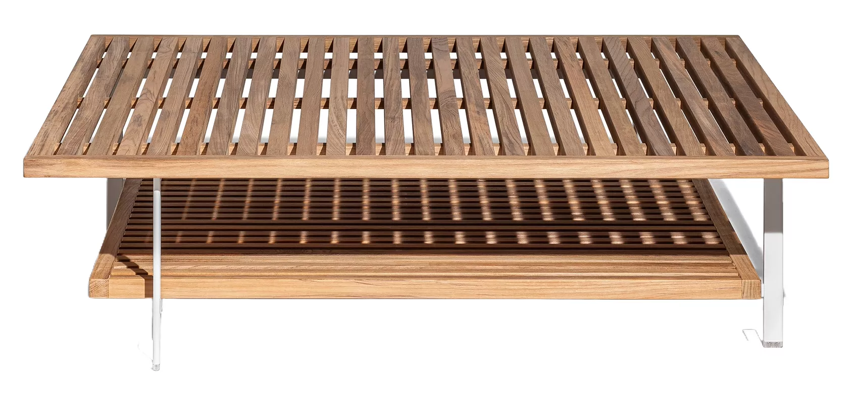 - Besondere Details: Die Verarbeitung der Dauben auf der Oberseite der Tischchen verleiht ihnen eine einzigartige Ästhetik und drückt die für die Solaria Kollektion charakteristischen Themen von Verflechtung und Transparenz aus. Beim Doppelplattentisch erinnert die wechselseitige Ausrichtung der beiden Platten an die "Carabottino"-Verarbeitung, die typisch für die Nautik ist.