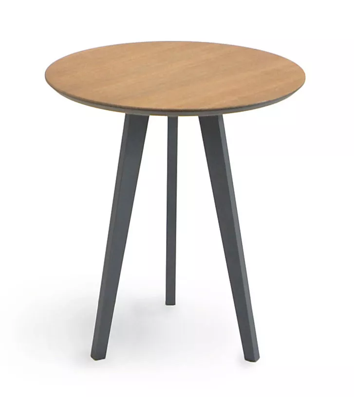 Beistelltisch Atlantic Ø 45 / 40 cm, mit Teakholz oder Aluminiumgestell von Fischer MöbelAlle Produkte, die für einen gemütlichen Nachmittag im Garten unentbehrlich sind, hat Fischer Möbel in der neuen Kollektion Atlantic zusammengefasst. Durch das moderne, funktionale Design lassen diese sich mit allen anderen Kollektionen nach Ihren Wünschen kombinieren. Die stapelbare Sonnenliege bietet besten Liegekomfort mit verstellbarer Rückenlehne. Die ergonomisch geformte Relaxliege passt sich dem Körper perfekt an und lädt zum Verweilen und Genießen ein. Es sind zwei Positionen durch die Kippfunktion möglich: Eine praktische Sitz-/ Liegeposition sowie die bequeme Liege- und Entspannungsposition. Beide Liegen verbinden hochwertiges pulverbeschichtetes Aluminium mit dem bewährten Gewebe. Die beiden Leichtgewichte haben eine bewusst hohe Liegefläche und lassen sich mit Rollen während oder nach dem Sonnenbad bequem bewegen. Das innovative Design der Atlantic Relaxliege wurde vom Rat für Formgebung mit dem ICONIC AWARDS 2016: Interior Innovation belohnt. Für praktische Abstellmöglichkeiten sorgen die kleinen, höchst funktionalen Atlantic Beistelltische. Das schnörkellose, moderne Design der Beistelltische machen sie zu einem modernen Klassiker. Zur Auswahl stehen Tischbeine aus Teak oder pulverbeschichtetem Aluminium mit Tischplatten aus fm-laminat spezial oder fm-laminat spezial mit Teak. Neu sind die handgefertigten Atlantic Outdoorteppiche aus 100% Polypropylen. Bringen Sie mit ihnen das Wohnzimmer in den Außenbereich. Die Oberfläche ist angenehm für die Füße und scheut keine Feuchtigkeit, damit sind die Teppiche optimal für den Einsatz im Freien. Ihre Vorteile mit Fischer Möbel: Aluminiumgestell: mit anthrazit matt Strukturlack beschichtet Teakholzgestell Tischplatte: fm-laminat spezial graphito / fm-laminat spezial mit Teak Leicht zu reinigen Ganzjährig wetterfest Maße: (Ø × H) 45 × 40 cm Gewicht 4 kg
