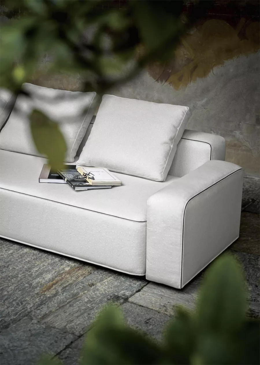 Schon immer waren gepolsterte Sofas ein Beispiel italienischer Exzellenz. RODA erneuert den Begriff vom Sofa mit der Einführung des ersten ‘total outdoor’ gepolsterten Sofas. Die Haltbarkeit einer Polsterung gegen Wettereinflüsse steht meistens im Widerspruch zu Bequemlichkeit und Schönheit. RODA löst diese Schwierigkeit dank der Verwendung von 3 unterschiedlichen Polyurethanen, die vereint in einem 3D Netz ein „Luftkissen“ bilden. Die Polsterung wird von widerstandsfähigen Elastikgurten an einer leichten Struktur befestigt. Diese Struktur besteht aus Aluminium und Edelstahl 304 Kleinteilen und ist mit einem Polyesterlack überzogen, um Haltbarkeit zu gewährleisten. Dank der verstellbaren Füßen, ist es möglich das Sofa auf jede Oberfläche zu stellen. Die abziehbare DANDY Überzüge werden mit unsichtbaren Klettstreifen an der Struktur befestigt. Die Roda Dendy Outdoor Kollektion von Rodolfo Dordoni verwandelt jeden Raum sehr raffiniert zu einem fortschrittlichen und komfortablen Sitzbereich. Das 3D-Netz Grey um das Dränage-Polster verleiht dem Produkt einen angenehmen, kompletten Look, auch ohne Polsterbezug.