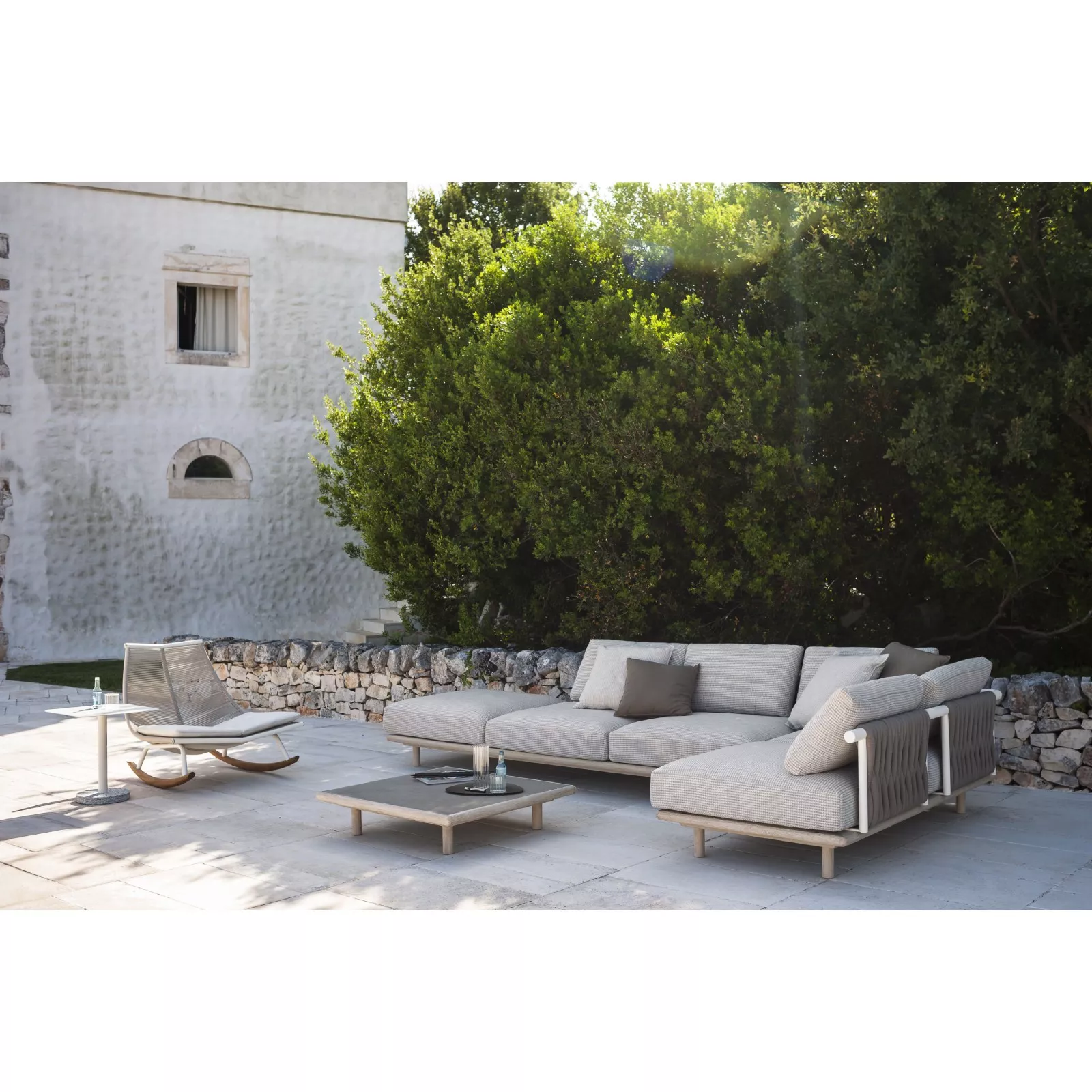 Die Roda Eden Outdoor Kollektion von Roda verwandelt jeden Raum sehr raffiniert zu einem fortschrittlichen und komfortablen Sitzbereich. Die Kollektion Eden von RODA ist ein Projekt, dass sich durch die formale Einfachheit auszeichnet und besteht aus modulierbaren Sofas und Tischen, die elegant und anspruchsvoll Ihren Innen- und Außenbereich vervollständigen. Die robusten Teakholzgestelle mit der strengen Linie der Rückenlehnen und Sitze wird mit dem absoluten Komfort der Polster verbunden.