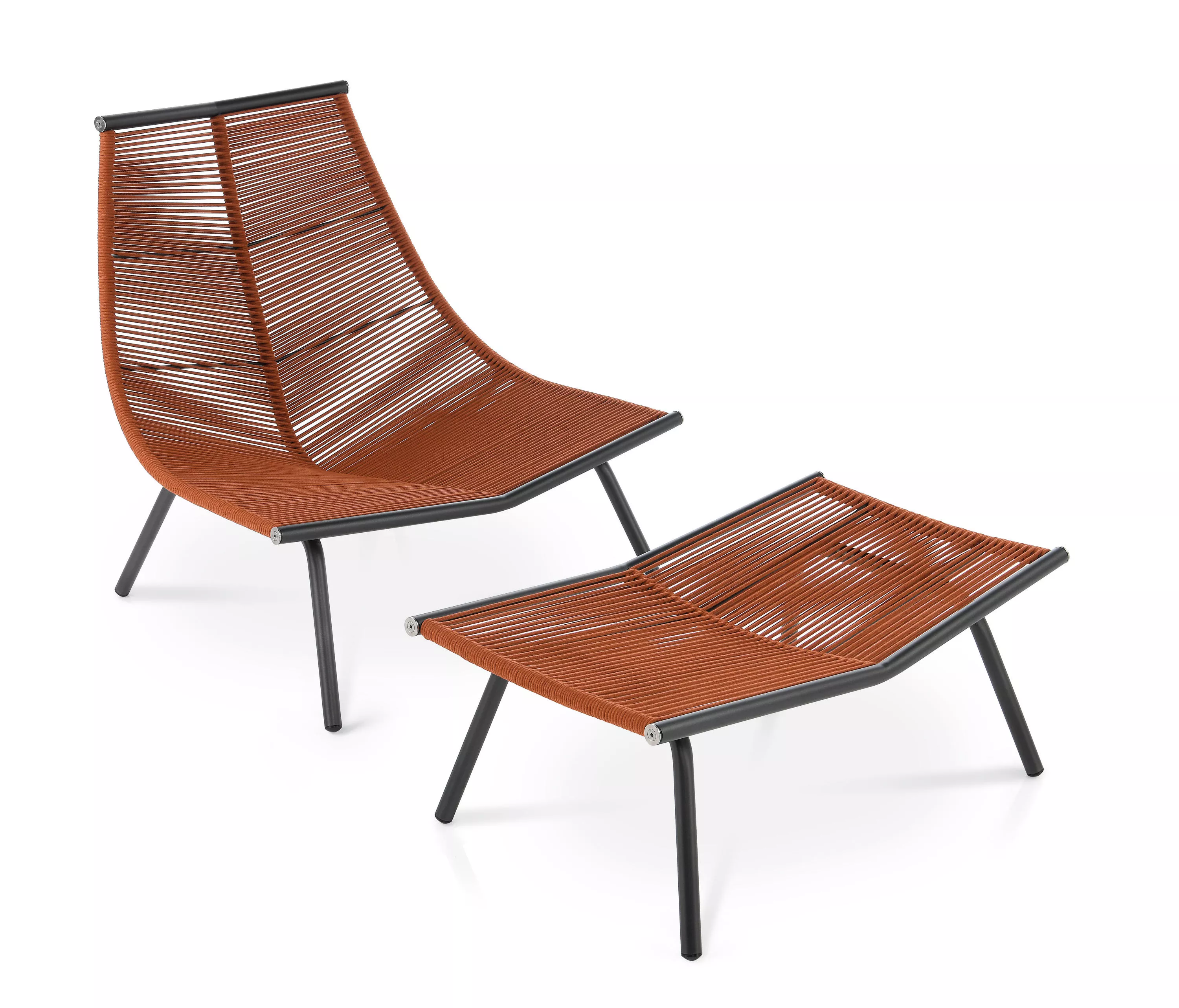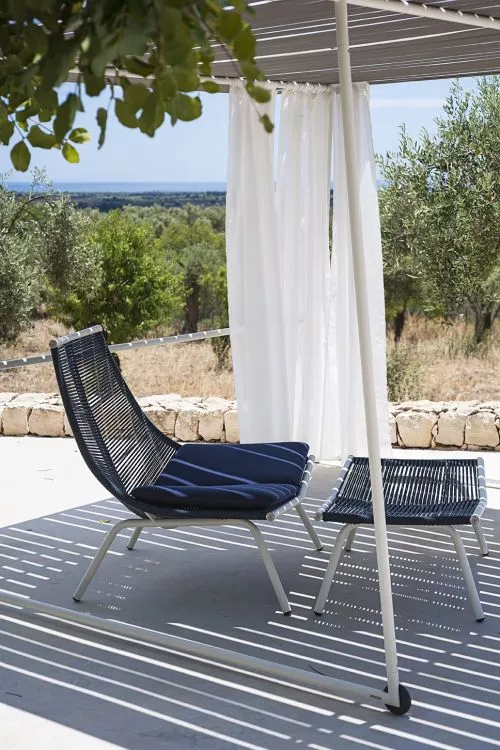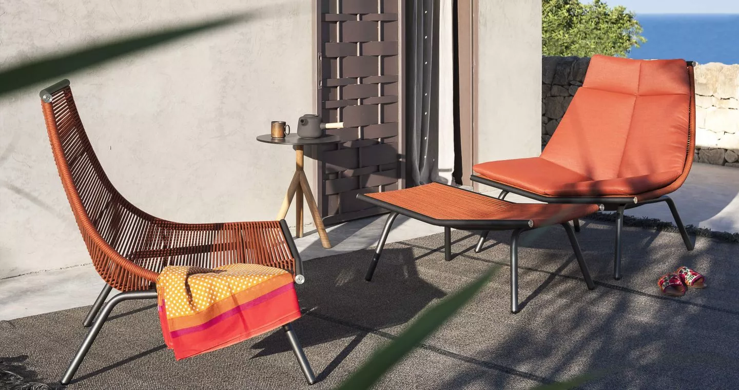 Die Kollektion besteht aus Gartenhockern, Loungesofas, Loungesesseln und Loungestühlen, die alle ein einzigartiges Design aufweisen und Komfort mit Stil verbinden. Die Möbel bestehen aus robustem Edelstahl, der mit strapazierfähigem Polyester- oder Acrylgarn bespannt ist. Diese Fäden bilden eine stabile und dennoch flexible Basis, die die bequemen Sitz- und Rückenkissen optimal stützt.