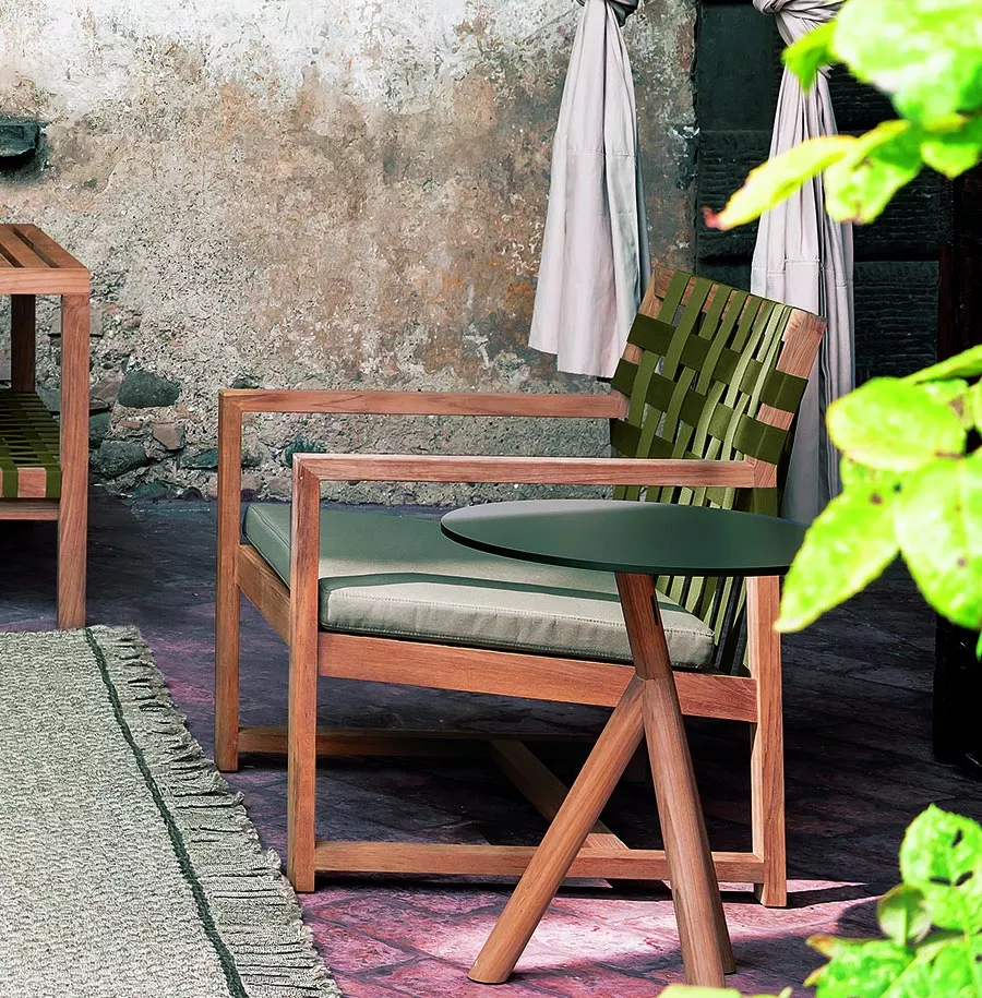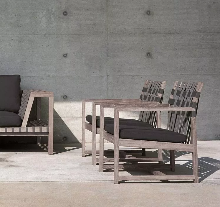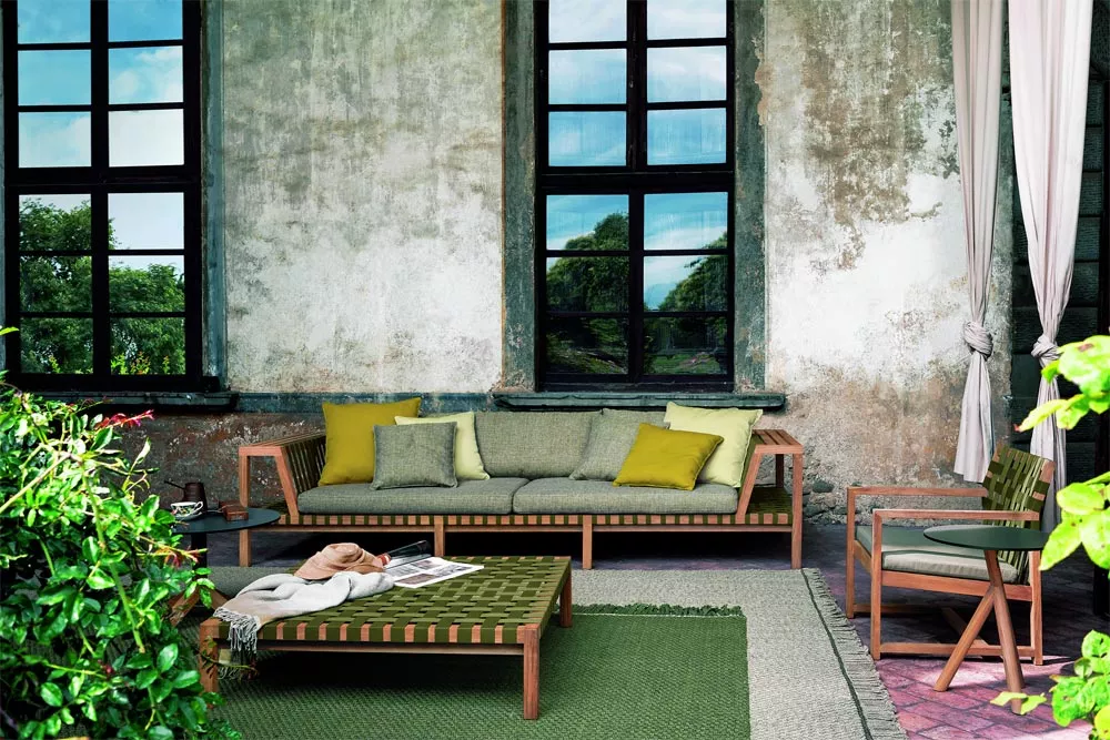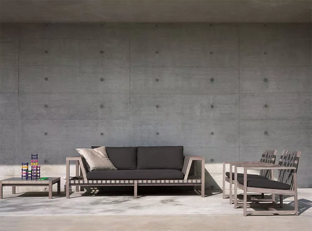 Die Kollektion Network von Roda, entworfen von Rodolfo Dordoni, markiert einen Wendepunkt im Design des Unternehmens. Diese Produktlinie zeichnet sich durch massives Teakholz und ein modulares System aus, das sich für Wohn- und Entspannungssituationen eignet. Besonders auffällig sind die Rückenlehne, die als Ablage für Accessoires dient, und die Kombination aus klaren Linien und eleganter Schlichtheit.