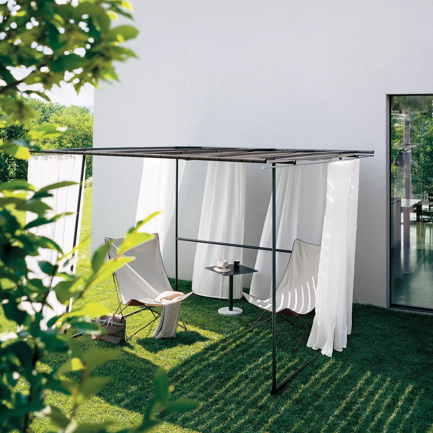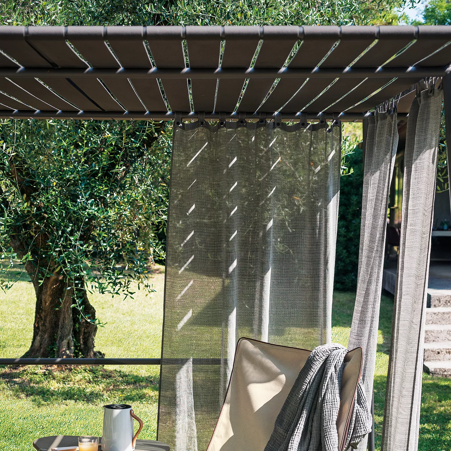 Ombrina ist das perfekte Sonnendach für Ihren Außenbereich. Der Pavillon ist mobil (2 x Rollen) und lässt sich durch "Steinanker" beschweren.