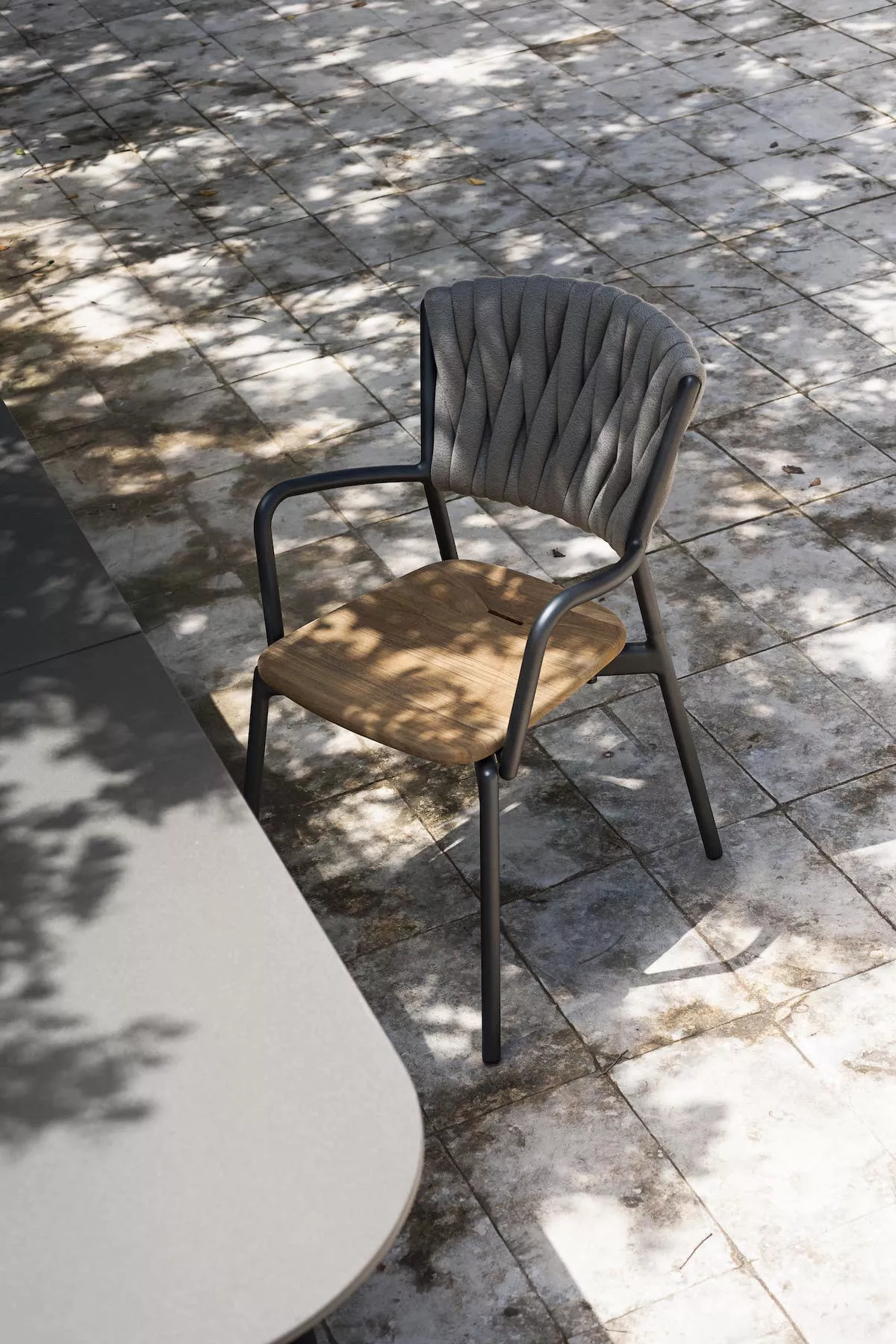 - Sitzfläche aus Polyurethan oder Teakholz