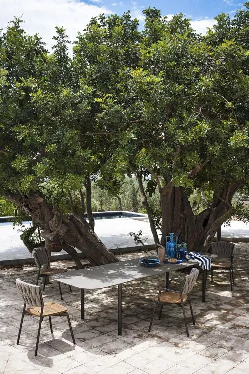 Piper Outdoor Loungetisch • Ø 110 cm von Roda (verschiedene Tischplatten) Mit der Piper-Kollektion führt RODA ein durchdachtes System von Produkten, die sich an neue Kombinationen und Varianten anpassen, ein. Die Piper Sofas, gekennzeichnet durch die Materialkombinationen Aluminium/Gurten für die Version mit hoher Rückenlehe und Aluminium/Gurtgeflecht für die Version mit niedriger Rückenlehne, bieten eine Vielzahl an Kombinationen mit individuellem und charakteristischem Design. Das System der Piper Sofas ist eine perfekte Mischung aus Formen, Materialien und Farben: die mit Gurten bezogenen hoheren Rückenlehnen können tatsächlich neben den Batylineelementen mit niedriger Rückenlehne kombiniert werden, um eine originelle Wohnsituation zu schaffen. Neben der klassischen SMOKE Ausführung ist auch eine Version in hochglanzpoliertem Aluminium in der neuen Farbe RUST erhältlich. Gurten und Batyline®-Gewebe, aus denen die Rückenlehnen gefertigt sind, sind in 5 Farben erhältlich: grau, sand, braun, blau und orange. Insgesamt 20 neue Farbkombinationen und Materialien, die an individuellen Geschmack und Bedürfnisse angepasst sind. Gestell: Aluminium pulverbeschichtet Tischplatte: Teakholz, Stein, HPL, Marmor die Herstellung dieser hochwertigen Möbel erfolgt in erstklassiger Qualität UV-, witterungs- und farbbeständig leicht zu reinigen Maße: (Ø × H) 110 × 40 cm