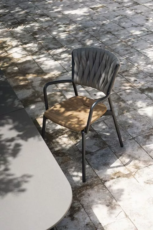 | Material Sitzfläche: | Kunststoffgeflecht, Teakholz |