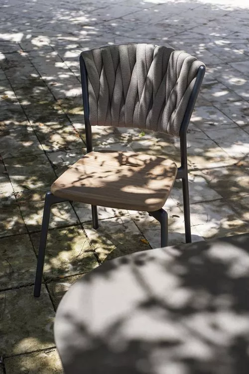 - Sitzfläche aus Polyurethan oder Teakholz