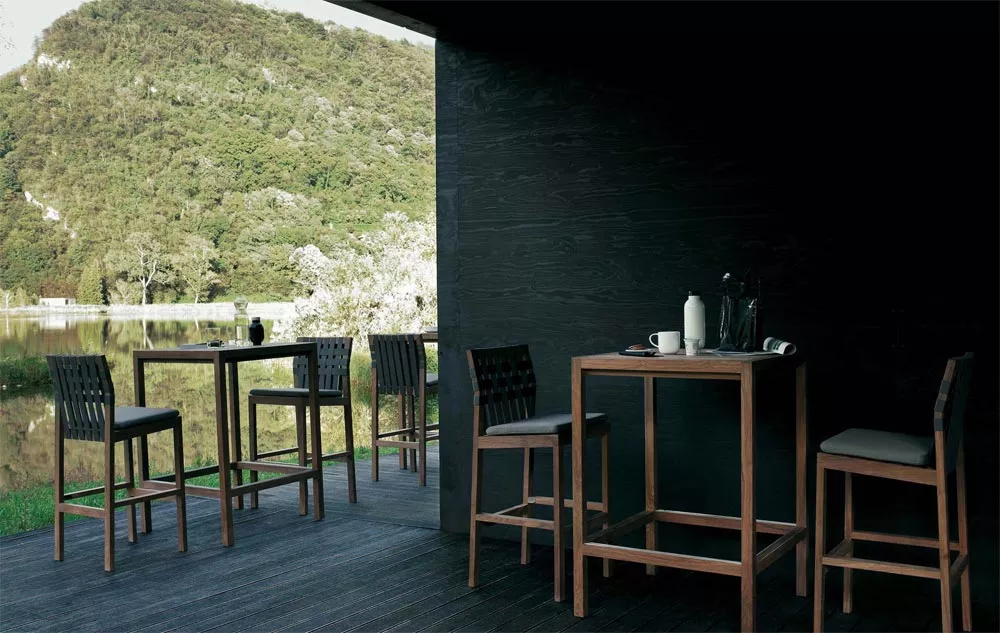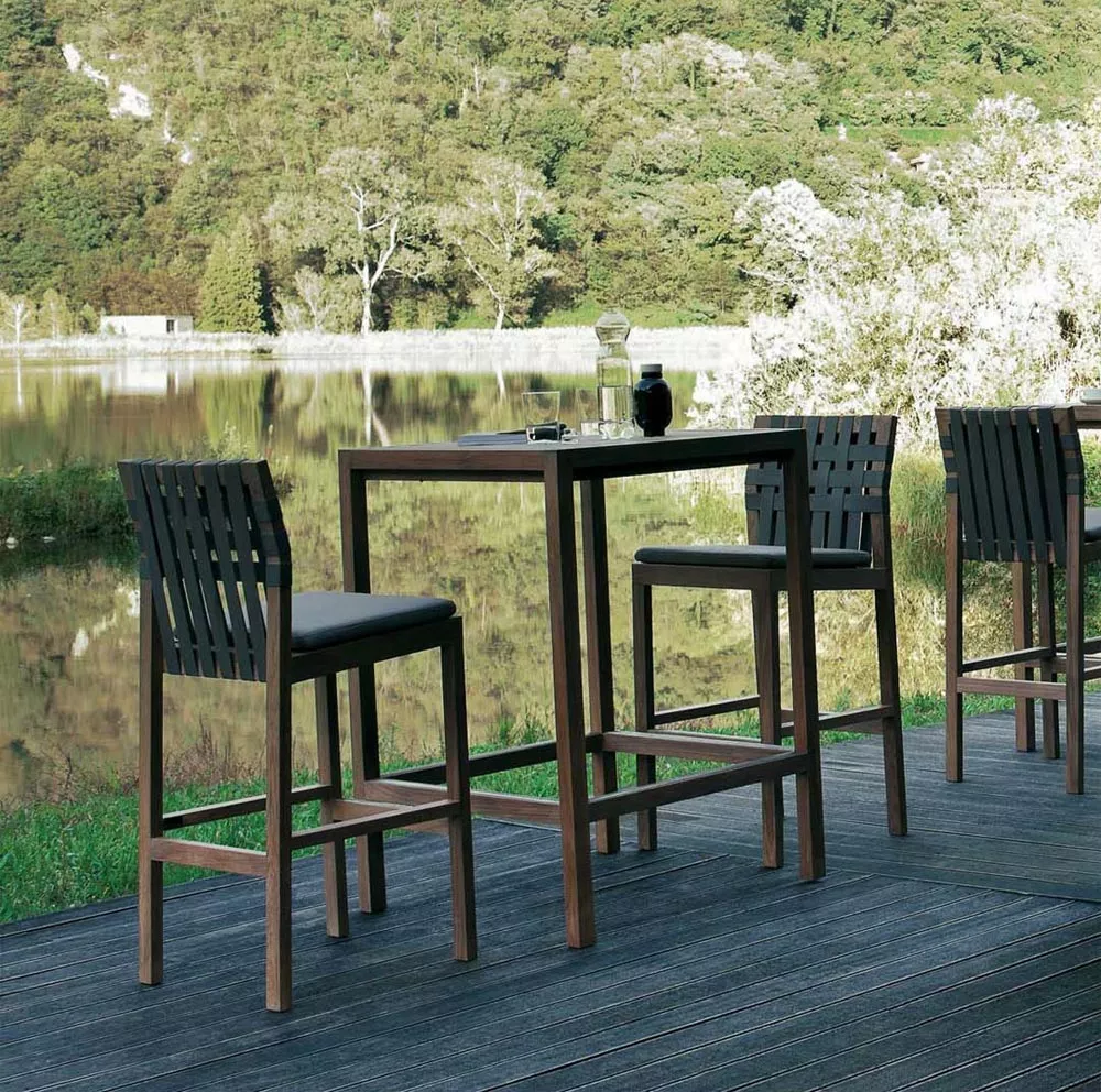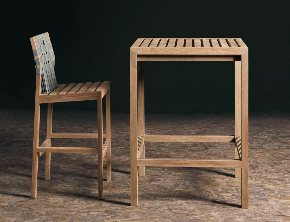 Network Outdoor Barstuhl 150 von Roda Die Kollektion Network von Roda, entworfen von Rodolfo Dordoni, markiert einen Wendepunkt im Design des Unternehmens. Diese Produktlinie zeichnet sich durch massives Teakholz und ein modulares System aus, das sich für Wohn- und Entspannungssituationen eignet. Besonders auffällig sind die Rückenlehne, die als Ablage für Accessoires dient, und die Kombination aus klaren Linien und eleganter Schlichtheit. Die Kollektion umfasst Sofas, Hocker, Couchtische, Bänke, Stühle, Liegen und eine Sonnenliege mit Rädern und Teakholzleiste für Handtücher. Gestell aus Teakholz die Herstellung dieser hochwertigen Möbel erfolgt in erstklassiger Qualität UV-, witterungs- und farbbeständig leicht zu reinigen Maße: (B × T × H) 50 × 51 × 112 cm