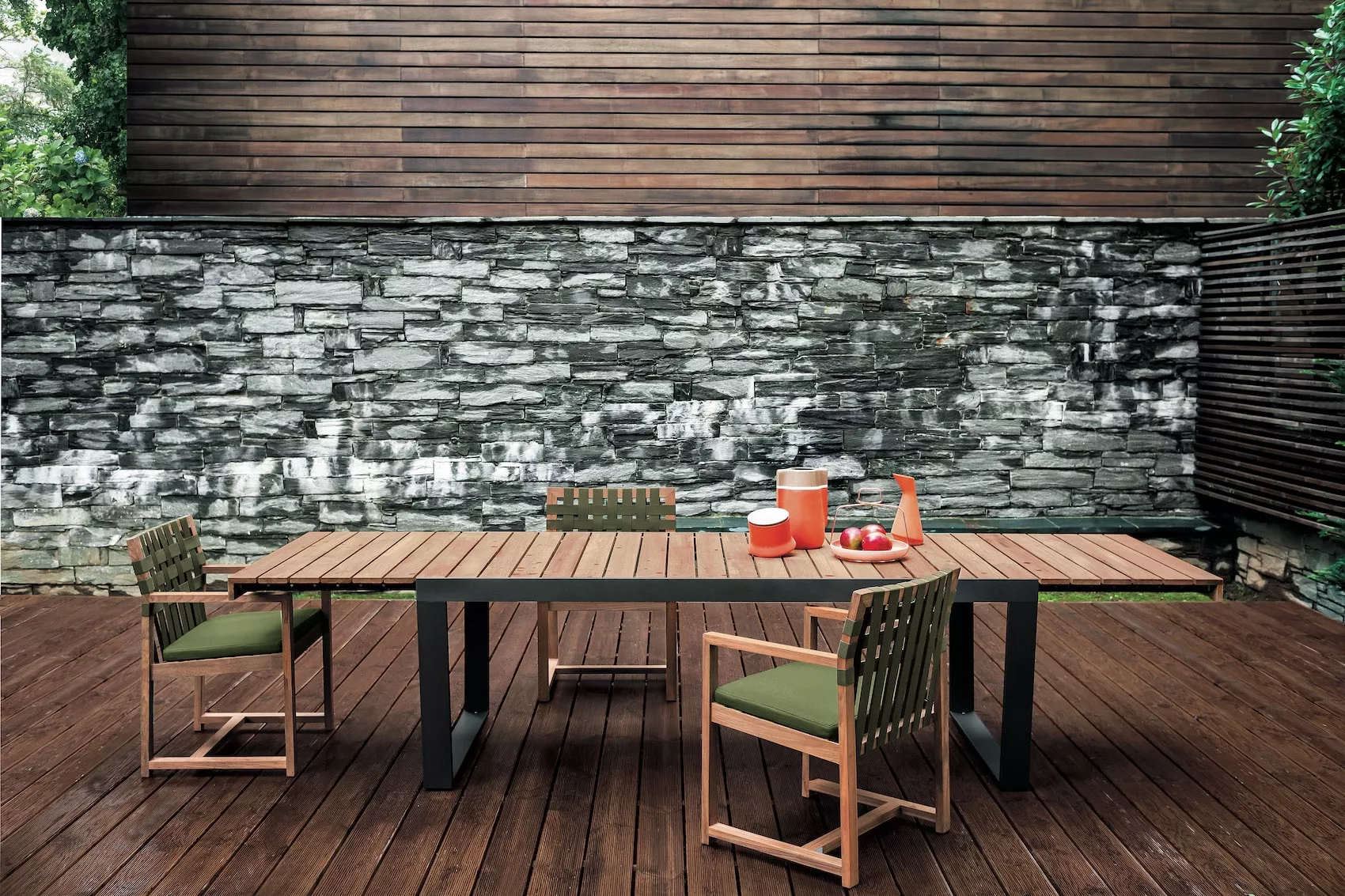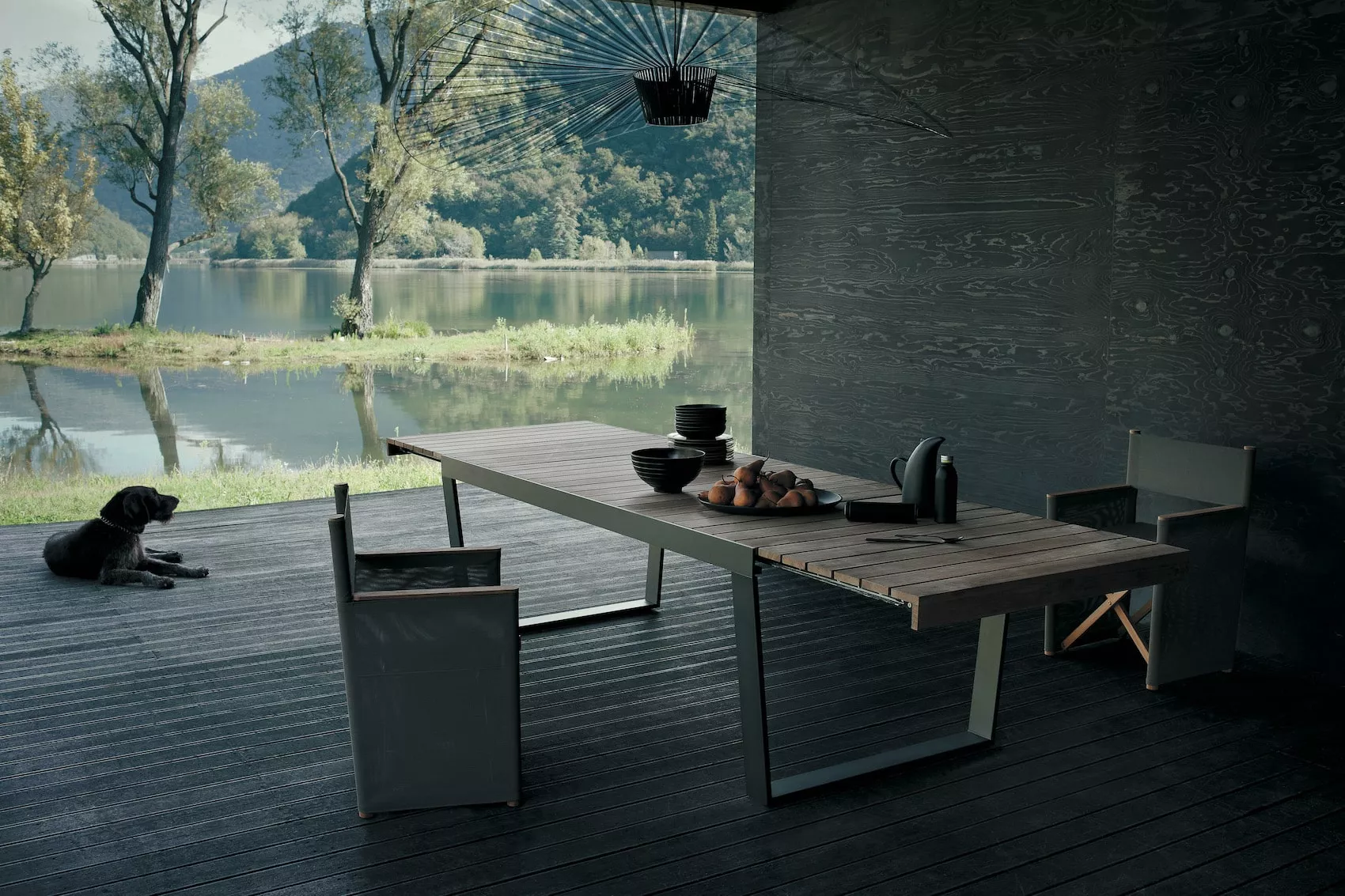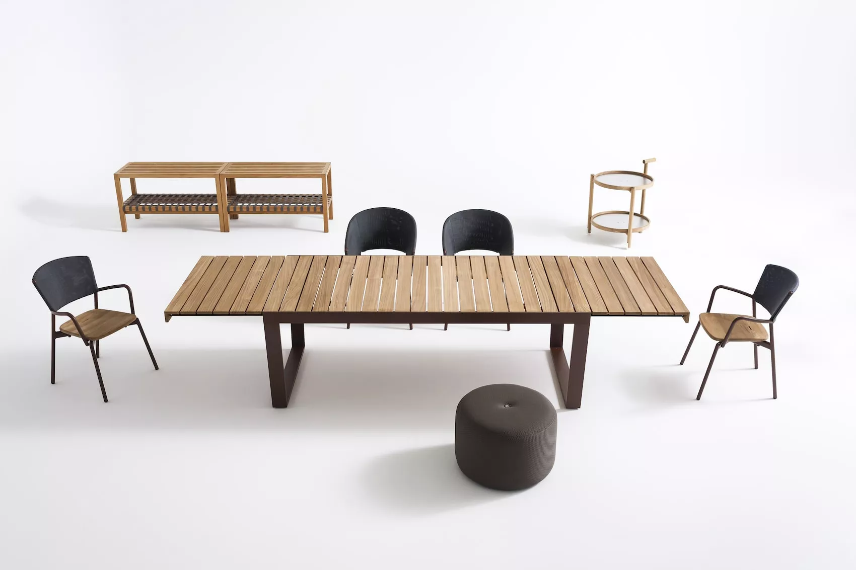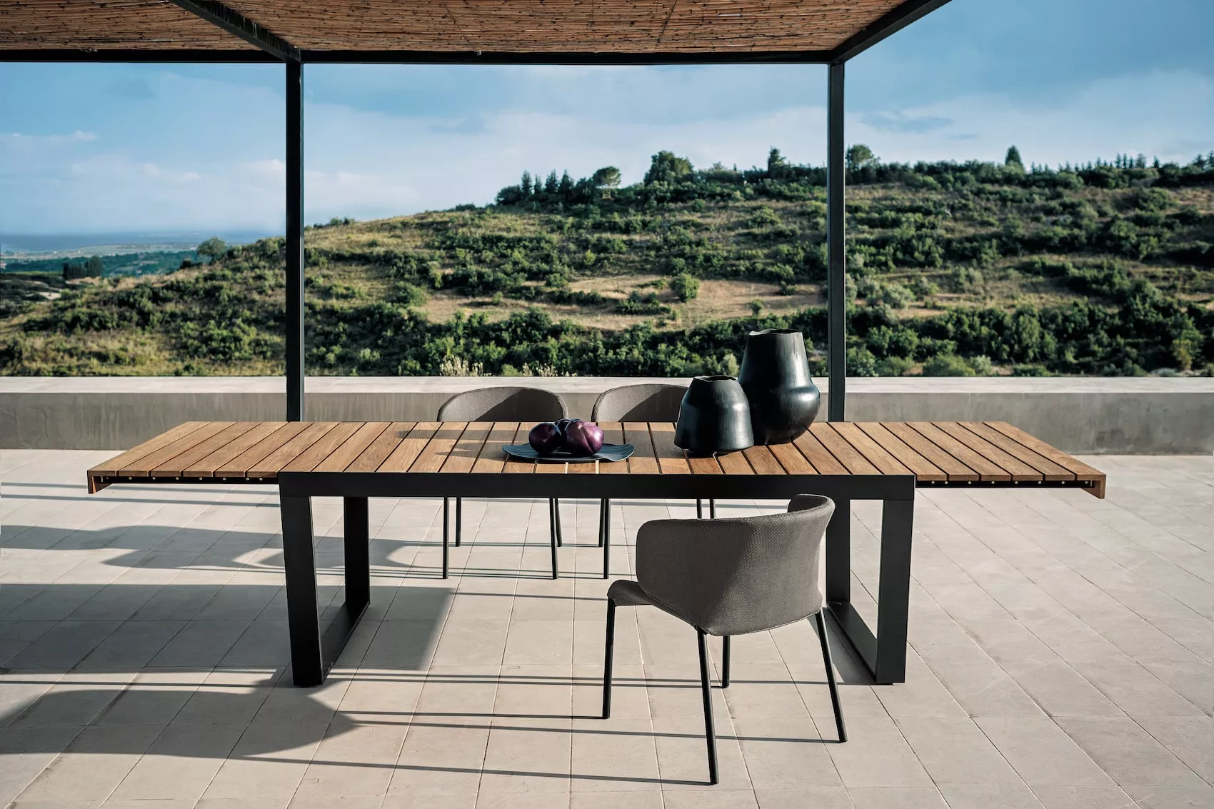 - Tischplatte: Teakholz, ausziehbare Verlängerung (bis 335 cm)