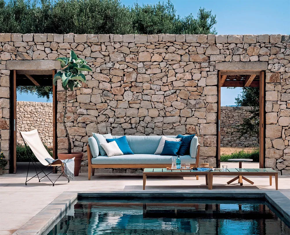 Die Roda TEKA Kollektion (Designer: Gordon Guillaumier) zeigt eine gelungene Kombination der natürlichen und hochtechnologischen Materialien, die für die Gestaltung der originellen Outdoorlösungen perfekt geeignet sind. Die sorgfältige Ausarbeitung der TEKA Gartenmöbel wird auch durch die genaue Auswahl einiger Details ausgedrückt, wie z. B. die Verwendung von Knöpfen, die perfekt in die Gestaltung der Sofa-Rückenlehne und Arme passen, die Kissen vom Rutschen abhalten und eine ästhetische Note verleihen. Die Roda Teka Outdoor Kollektion verwandelt jeden Raum sehr raffiniert zu einem fortschrittlichen und komfortablen Sitzbereich.