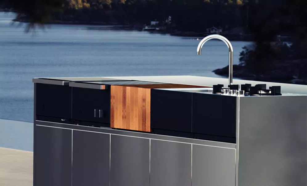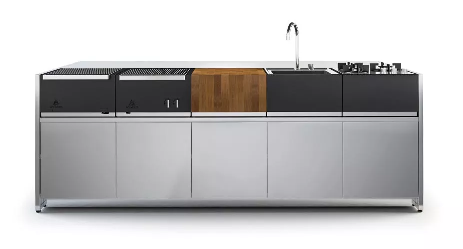 Gestalten Sie Ihre Kücheninsel nach Ihren Bedarf. Angefangen mit dem soliden Edelstahl-Basismodul fügen Sie die gewünschten Module hinzu, um Ihre individuelle Kombination Ihrer Outdoor-Küche zu gestalten. Das Ergebnis ist ein individuelles nützliches Designobjekt das auch auf größte Terrassenflächen passt.