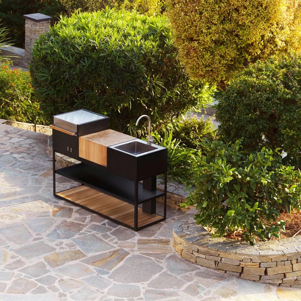 Die Röshults BBQ Grill Gas X-Serie ist der Grundstein der Designer-Outdoor-Küche. Entworfen von dem preisgekrönten Duo Mats Broberg und Johan Ridderstråle, bei dem kein Detail dem Zufall überlassen wurde. Der Grill ist mit dicken Edelstahlrosten ausgestattet, die Wärme speichern und die charakteristischen Grillstreifen ohne Abkühlung geben. Die Doppelschichten der Protection Bars sorgen für eine gleichmäßige Wärmeverteilung. Zwei variable Wärmesteuerungen für jede Sektion bieten maximale Kontrolle für exzellente Grillergebnisse. Das Fett und die Öle, die durch den Grill tropfen, werden in einer abnehmbaren Bodenwanne gesammelt, die mit Sand gefüllt ist, leicht gereinigt und nach Gebrauch entsorgt werden kann. Alle Röshults Gasgrills sind mit einer Abdeckung versehen, um den Gasbehälter sauber zu verbergen. Es gibt viele Accessoires, die das Design ergänzen, um Ihren Anforderungen für ein perfektes Barbecue-Erlebnis zu entsprechen. Röshults BBQ Grills werden von Star-Köchen auf der ganzen Welt gelobt, dank ihrer großen Grillflächen und leicht variierbaren Heizzonen. Komplettiert mit einem Beistelltisch, Gartenwagen und Waschbecken wird Ihre Outdoor-Küche zu einem Hingucker.