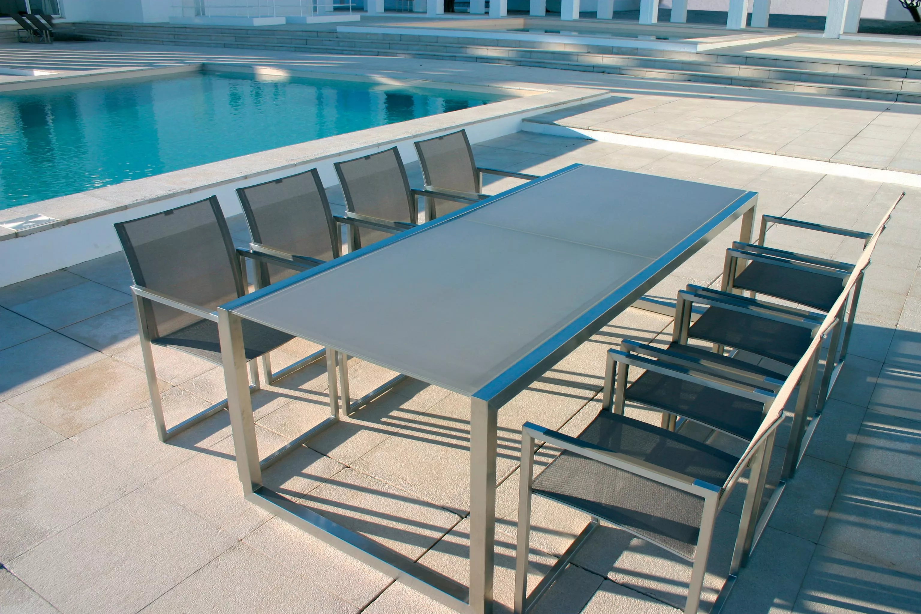 Fußbank Ninix mit Batyline-Bespannung Das Edelstahl-Gestell ist wahlweise in einer elektropolierten Variante erhältlich, die sich besonders gut für den Einsatz bei schwierigen Witterungsverhältnissen und im maritimen Bereich eignet. Ganzjährig wetterfest Hochwertiger Edelstahl (optional elektropoliert) Batyline-Bespannung