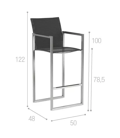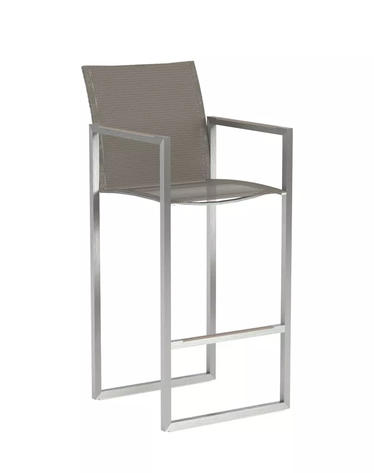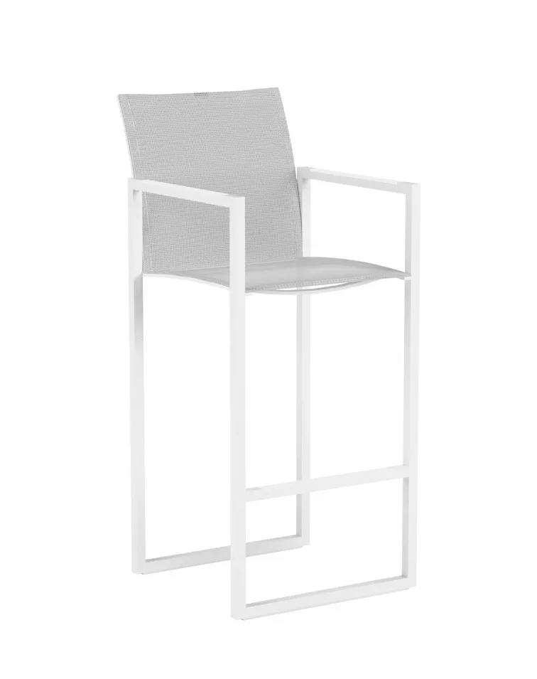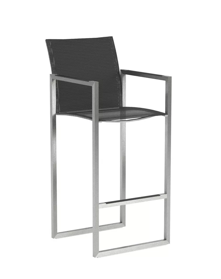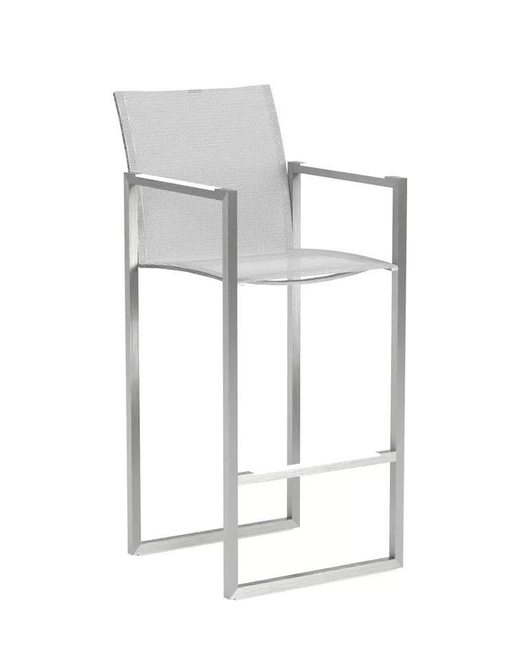 Barstuhl Ninix mit Batyline-Bespannung. Durch die Batyline-Bespannung weist der Barstuhl einen hohen Sitzkomfort auf und ist äußerst bequem.