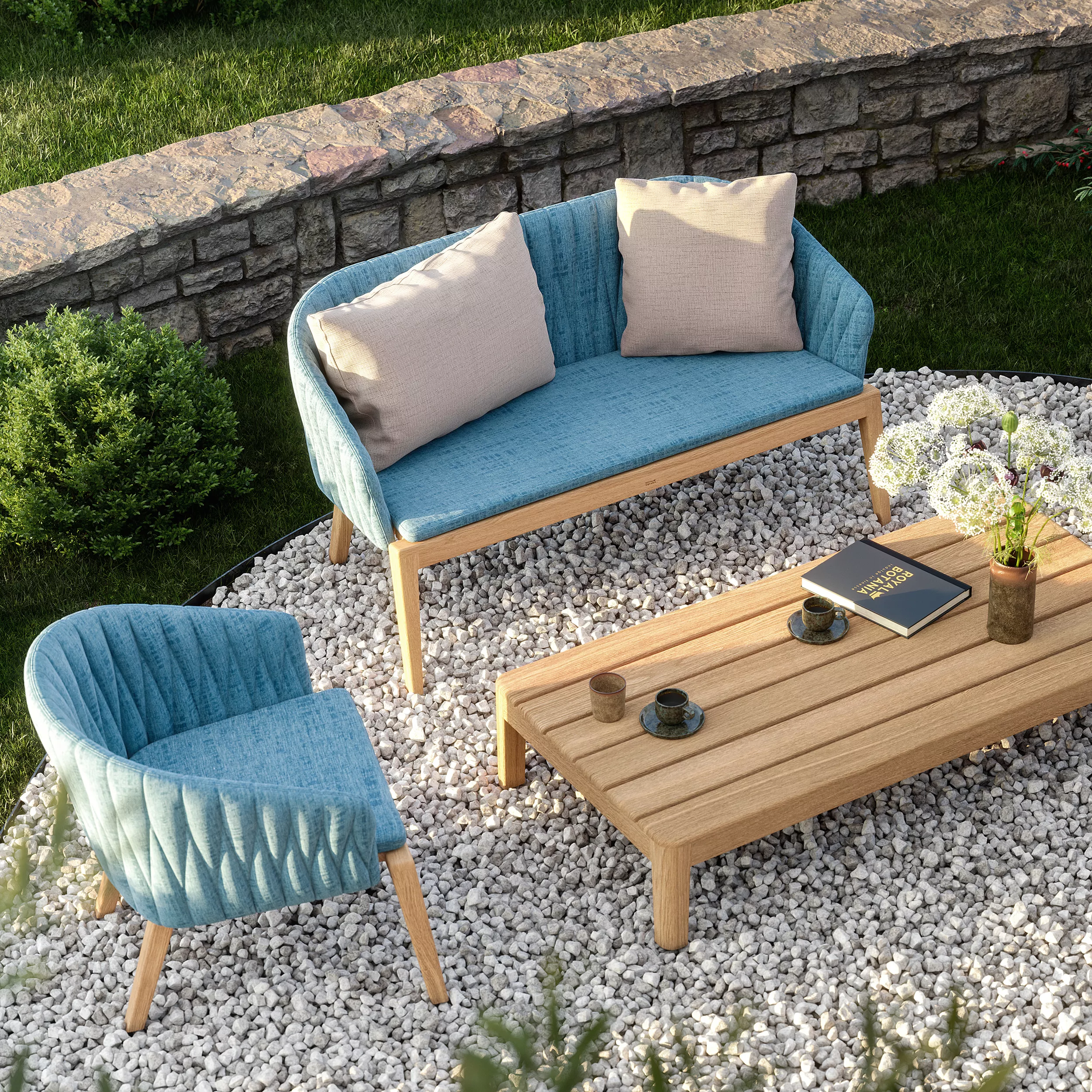 Die neue Calypso-Kollektion von Royal Botania vereint gemütlichen Komfort mit stylishem Design. Der Rahmen besteht aus Teakholz, wobei die Rückenlehne mit gepolstertem Stoff bespannt ist. Die Konstruktion wird mit einem bequemen Polster und einer breiten Auswahl an Dekokissen komplettiert.