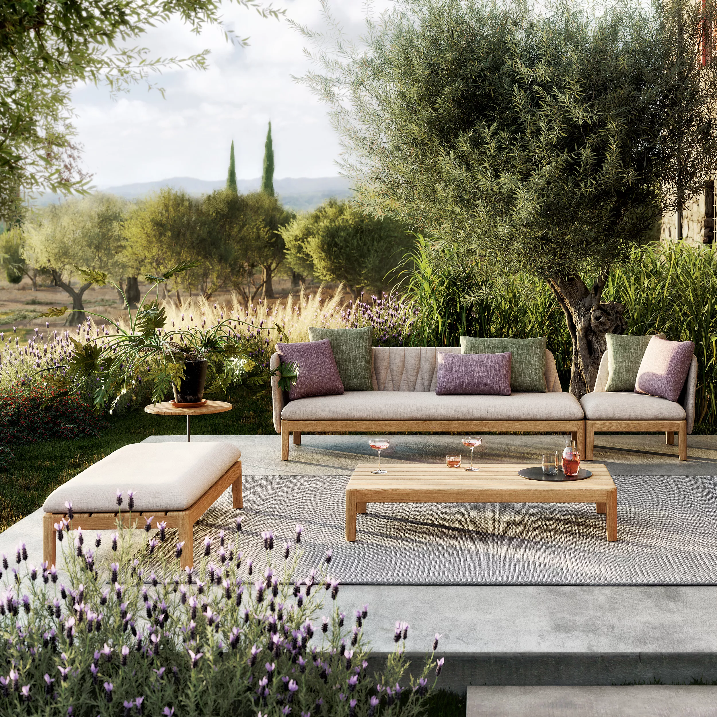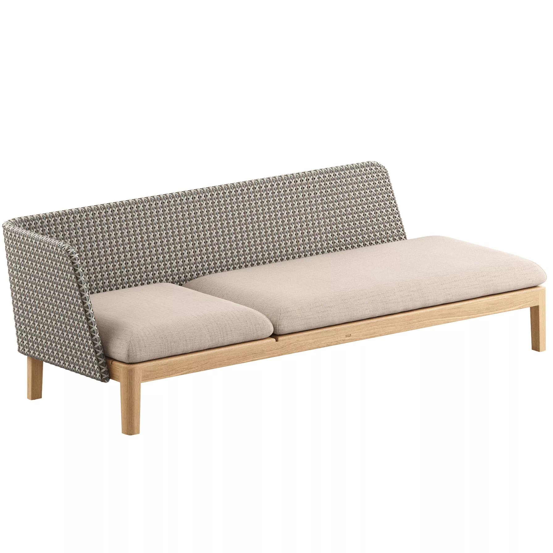 Royal Botania Calypso Lounge Modul mit Auflage Mit dem Calypso kommt die Freiheit. Unzählige Polstermöglichkeiten bieten viel Raum für Individualität. Das gesamte Programm ist modular aufgebaut. Auch hier ist die Auswahl an Modulen und Textilien so grenzenlos, dass Sie selbst zum Architekten Ihrer Traumlounge werden können. Ganzjährig wetterfest Hochwertiges Teakgestell Maße (B × T × H + Auflage)216 × 72 × 28 +12 cm