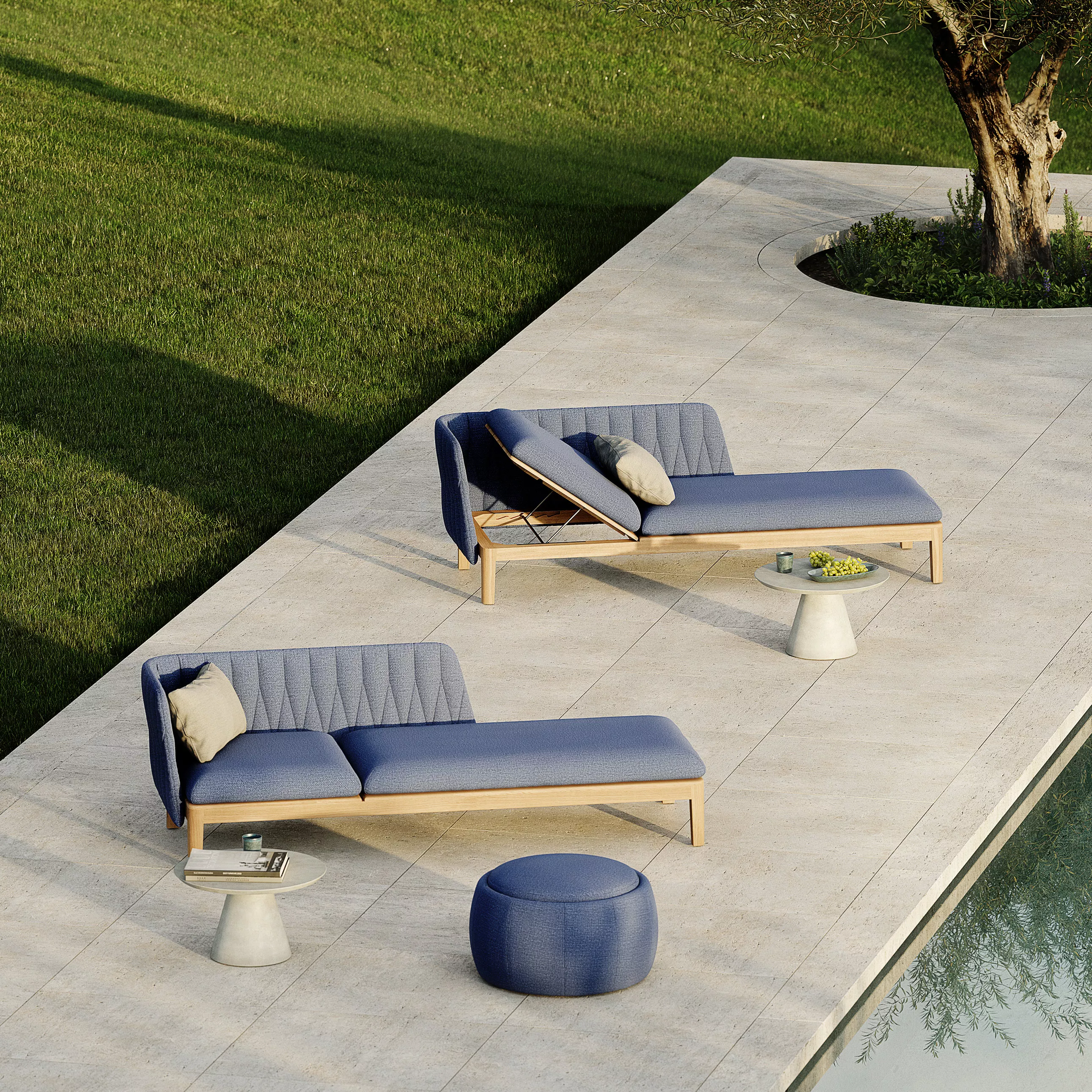 Royal Botania Calypso Lounge offene Chaiselongue mit Kopfteil