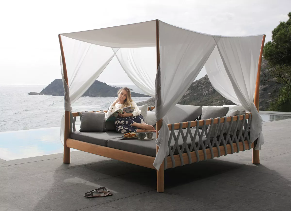 Royal Botania Daybed Tuskany mit Teakholzgestell eignet sich besonders gut für den Einsatz bei schwierigen Witterungsverhältnissen.